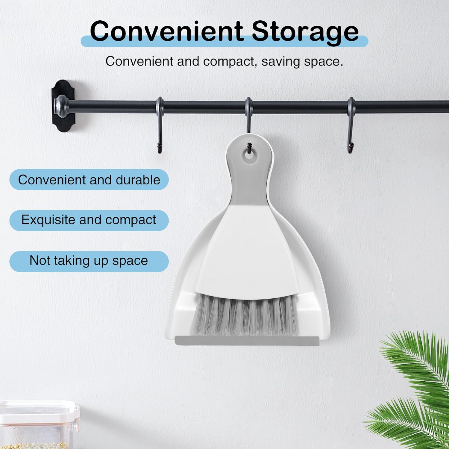 - COMPACT DESIGN: The compact design of the mini broom and dust pan can be easily stored in a desk drawer or hung vertically on the wall, saving you space