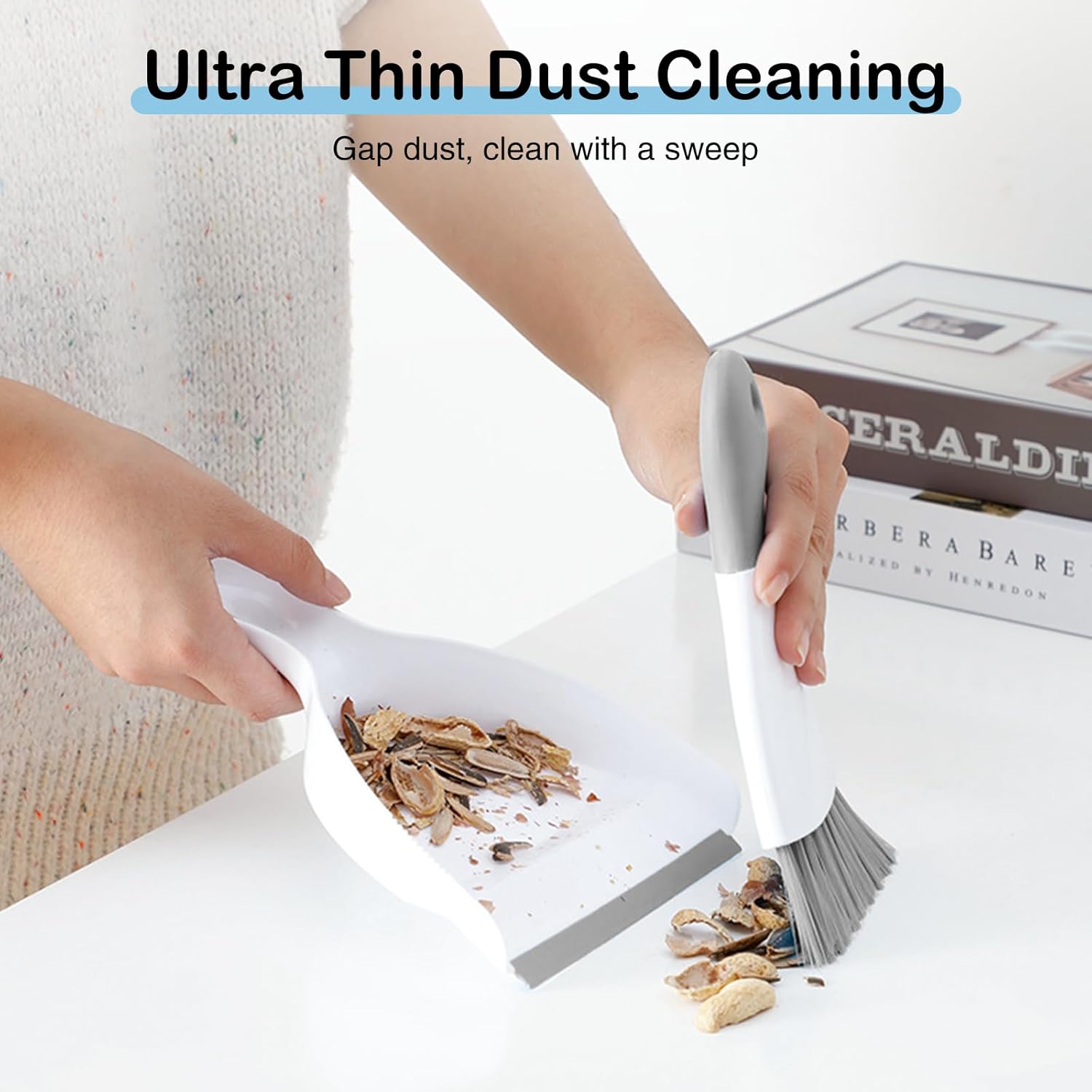 - ULTRA THIN DUST CLEANING:Ultra thin mini dustpan and brush can easily penetrate into any corner crevice, effectively removing small debris such as dust and food debris, and maintaining cleanliness and hygiene