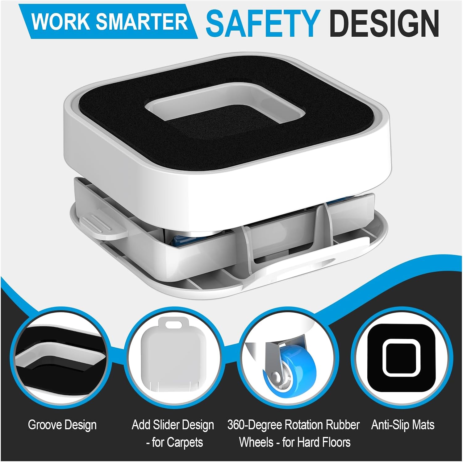 - 【Upgraded Design for Carpets】Our moving sliders are made of high-quality plastic, UNIQUE GROOVE DESIGN in the middle of the slider makes the slider better able to grip the objects.The slider included in the package can be moved across the carpet to increase the area of movement.The furniture dolly is built for long-lasting durability, supporting repeated use and repositioning
