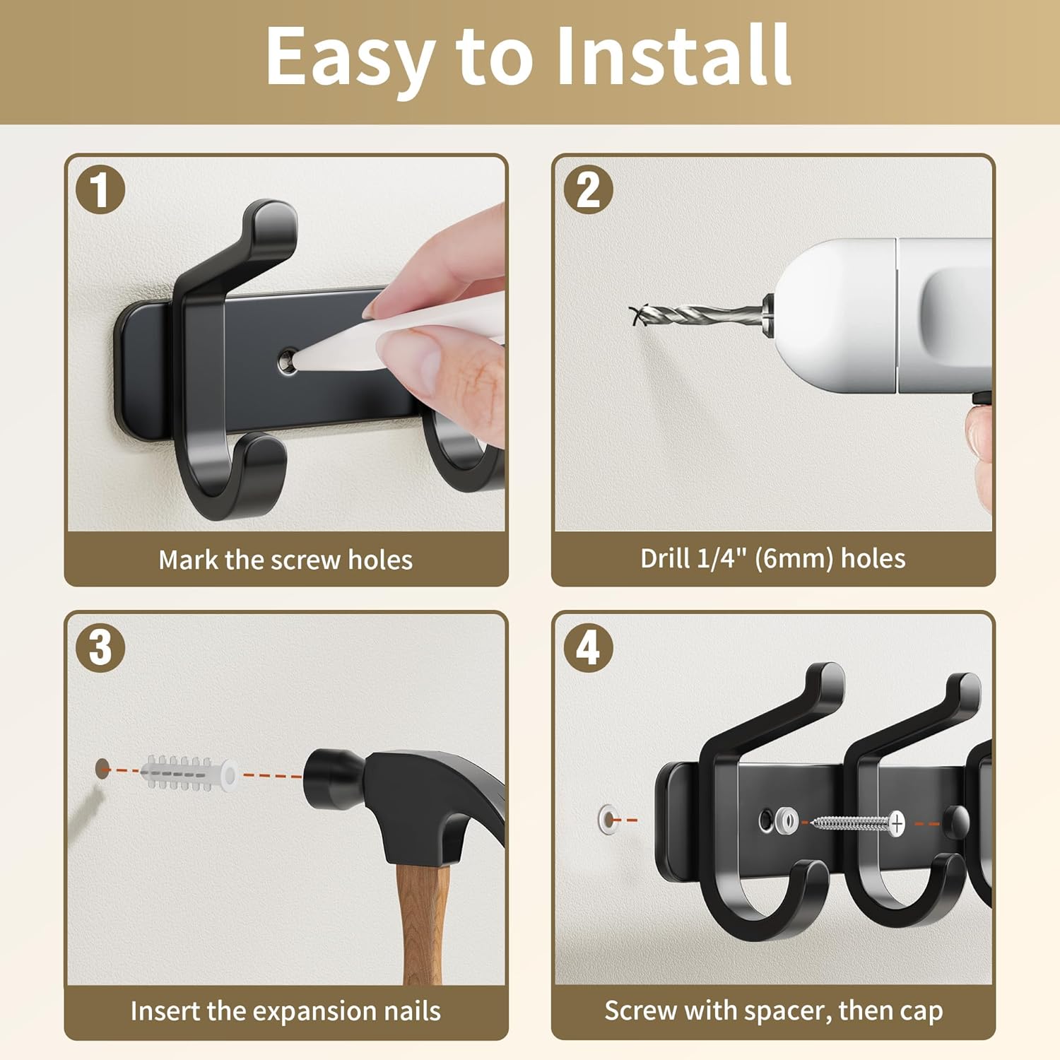 - Versatile for Any Space: Perfect for use in the entryway, bathroom, mudroom, closet, or behind a door. Whether you’re hanging towels, purses, or coats, this rack adds both function and style to your home.