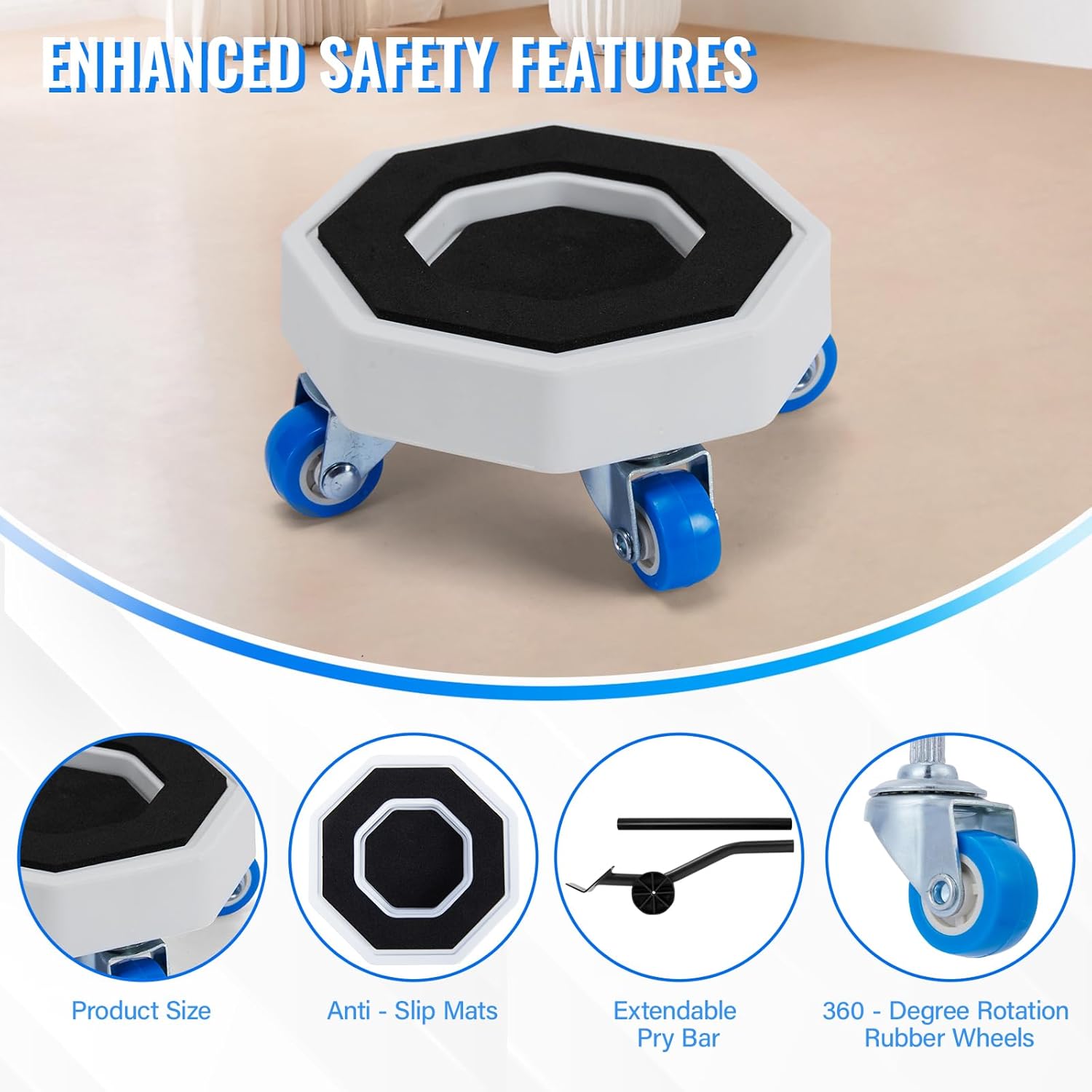 - 【Anti-Skid Groove Design】Hexagonal sliders with integrated wheels provide smooth, multi-directional movement on various floor surfaces.The furniture mover tool adopts anti-skid groove design to prevent furniture from sliding off the floor during movement, ensuring the safety of furniture and people. 4 wheels are equipped with brake to fix the dolly and prevent it from slipping