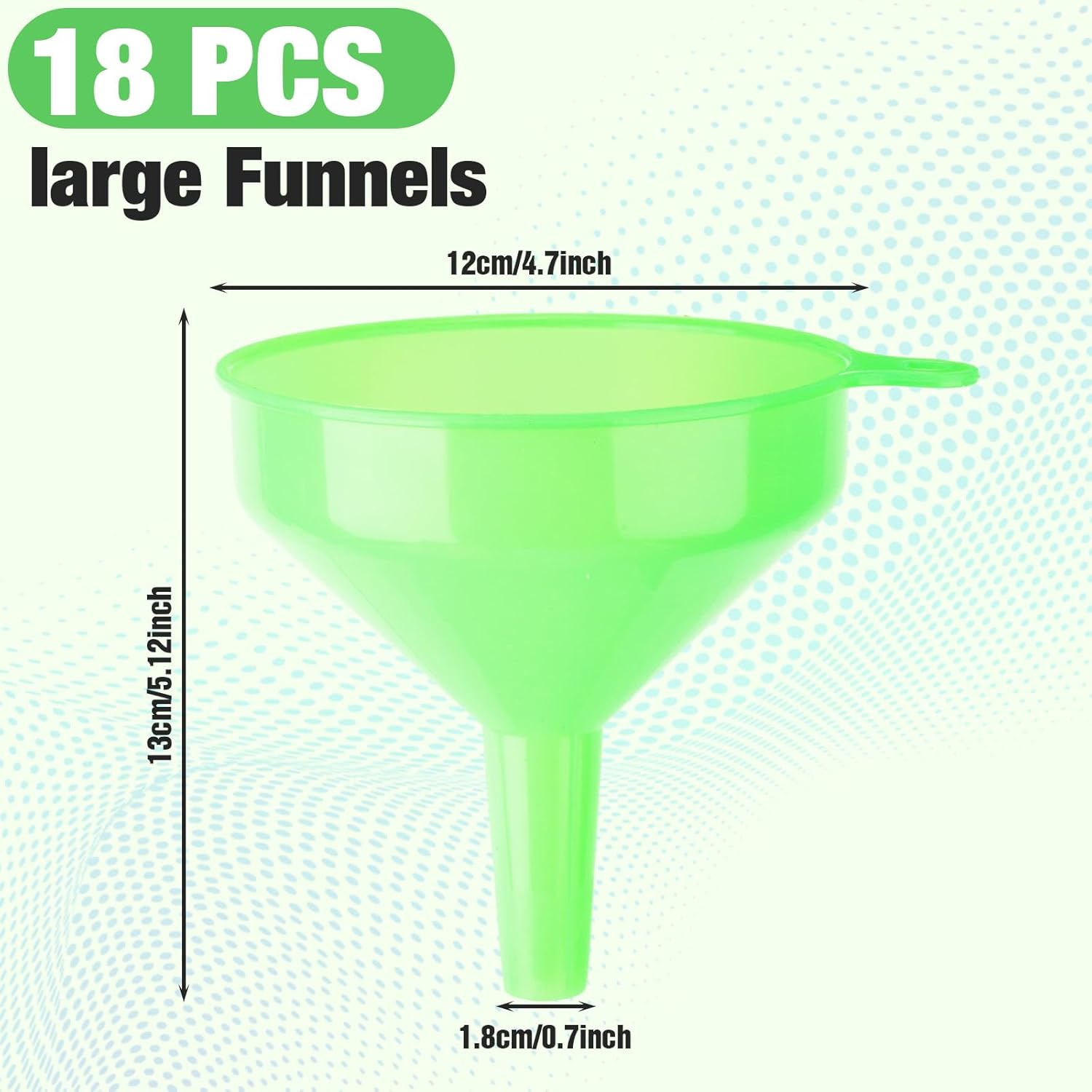 Honeydak 18 Pieces Multi-Purpose Plastic Funnels 4.7 Inch Wide Mouth Funnels for Filling Bottles, Jars, Containers Lab Use Oil Funnel for Gas, Car Oil, Lubricants and Fluids