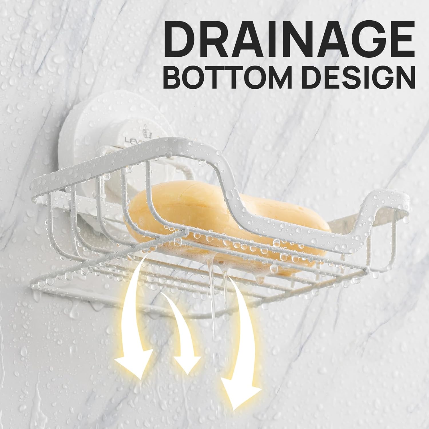 LEVERLOC Soap Dish, Soap Bar Holder for Shower Suction Cup Wall Mounted, Stainless Steel No-Drilling Removable Waterproof Sponge Holder for Bathroom Bathtub Kitchen Sink, Keep Dry, White