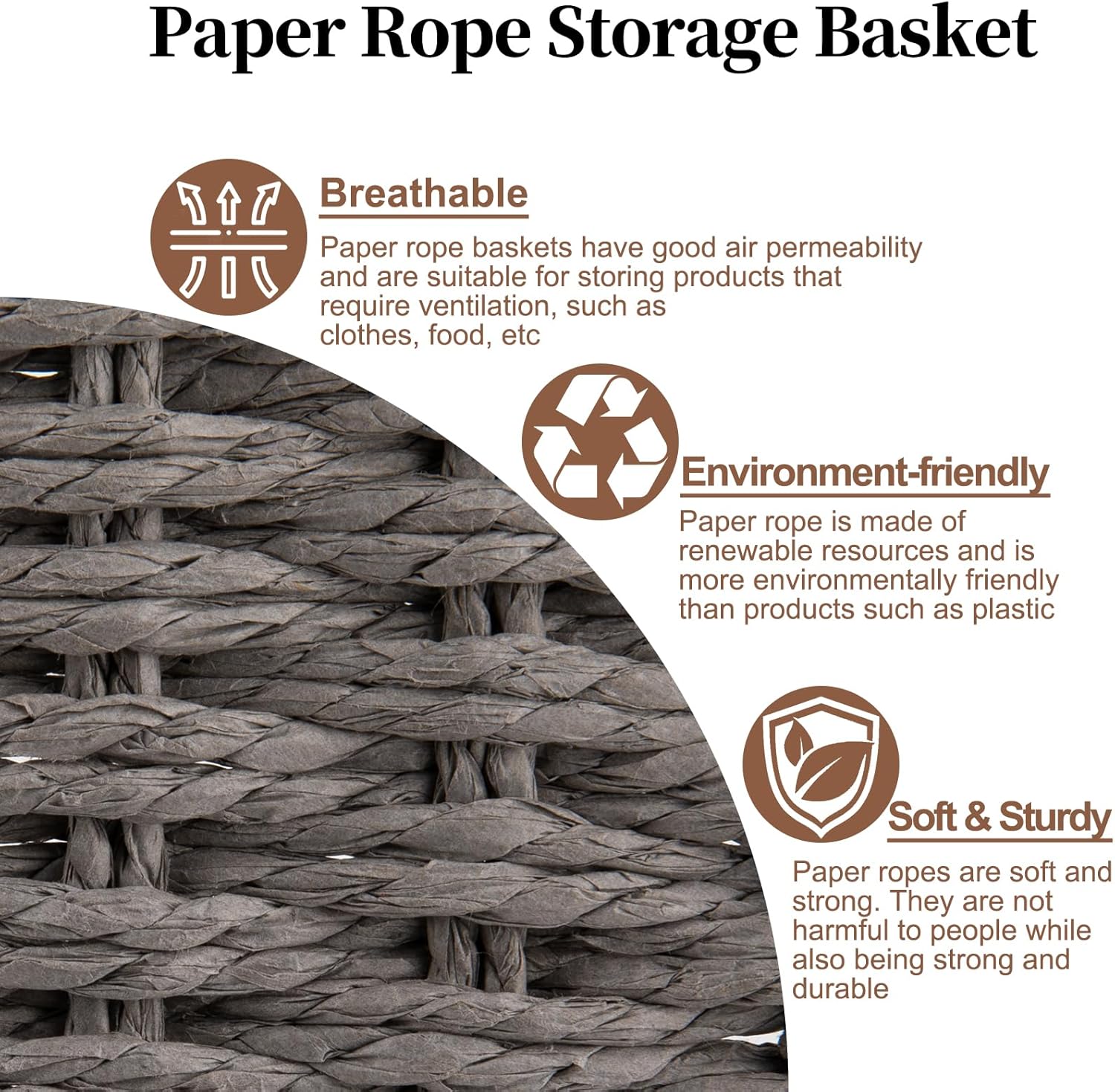 - 100% Paper Rope Material Production: OIAHOMY wicker storage basket is based on a metal frame and tightly woven with high-quality paper rope material, fully ensuring the durability of the shelf organizer; Paper rope is a 100% renewable material that protects the environment from harm
