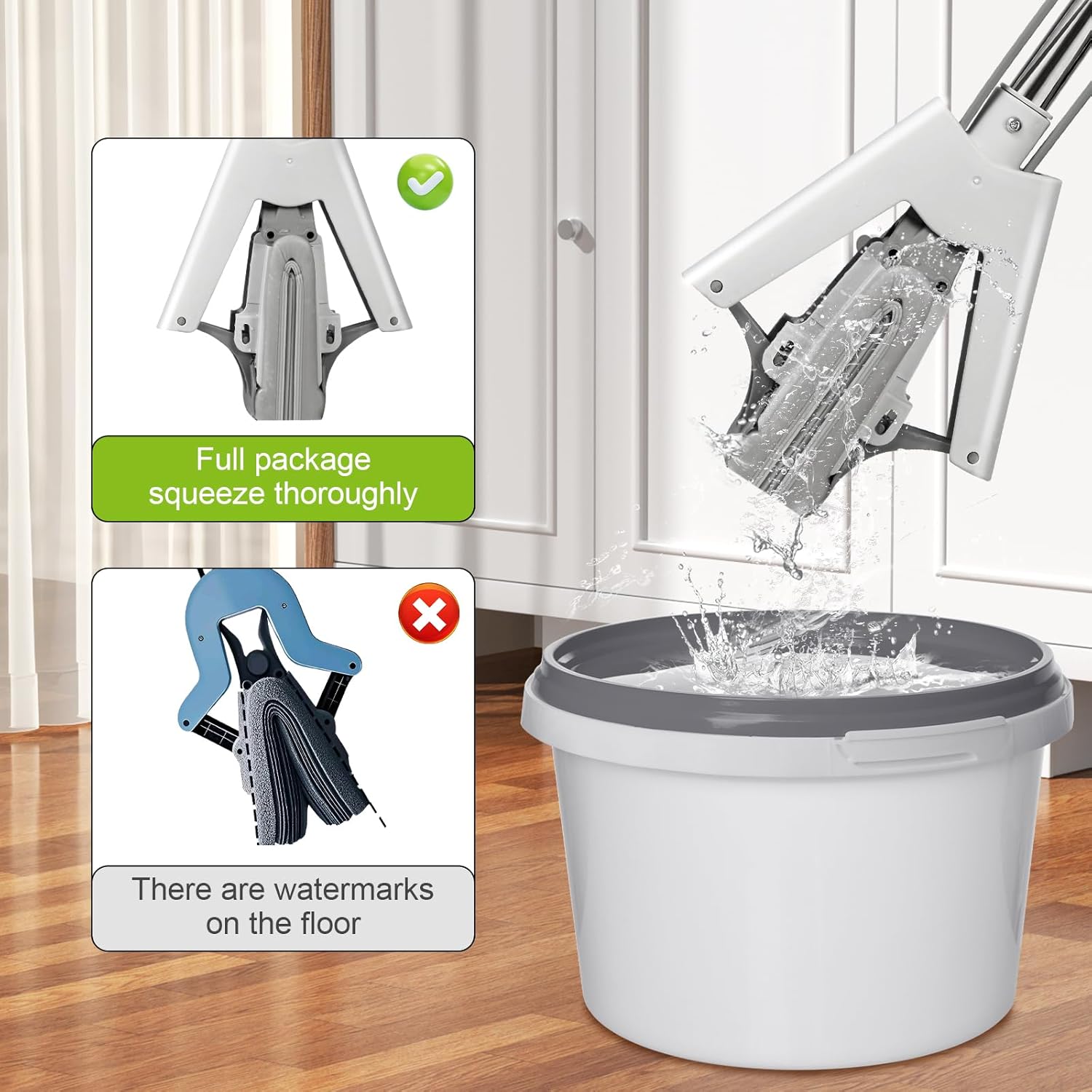 - HANDS-FREE WRINGING DESIGN: Easily squeeze out water and stains with a simple pull, achieving true hands-free wringing. Avoid direct contact with dirty water for a more hygienic cleaning experience.