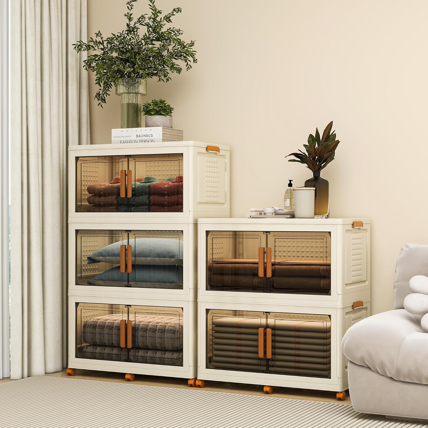 - 【Perfect for Home and On-the-Go】:From cube storage organizers for rooms to car trunk organizers, these storage containers with lids provide practical solutions for every need-these bins fit perfectly in closets, under beds, or in living spaces, also suitable for car trunk organization and storing seasonal items like clothes or holiday decorations