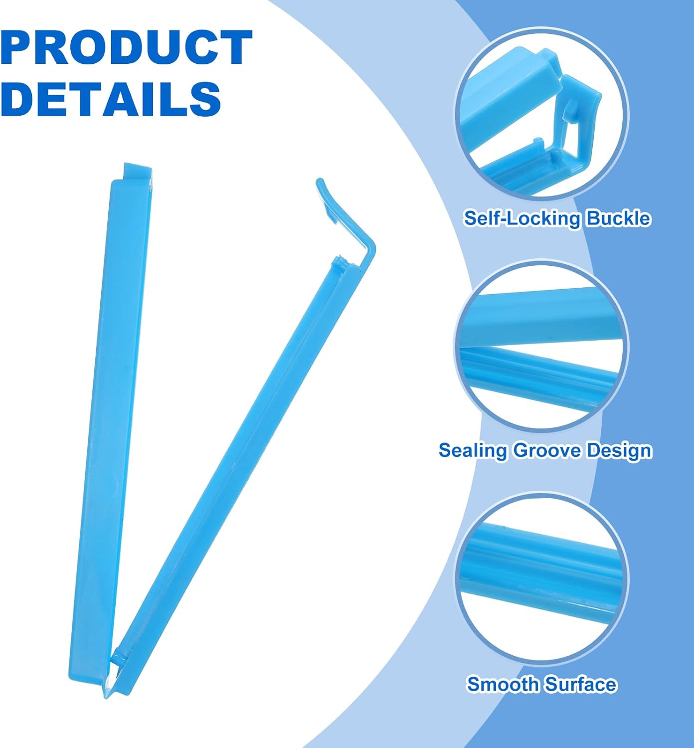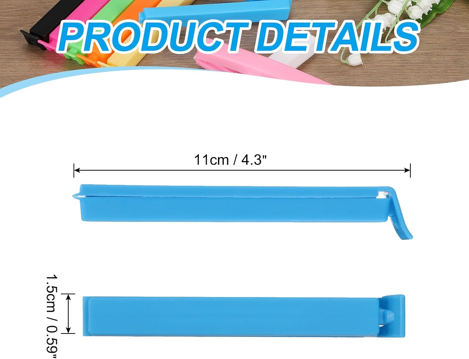 - Material: PP;Color: Blue;Maximum Clamping Width: 9 cm / 3.5 inch;Overall Size: 11 x 1.5 cm/4.3 x 0.6 inch(L*W);Package List: 10Pcs x Food Clips for Bags.