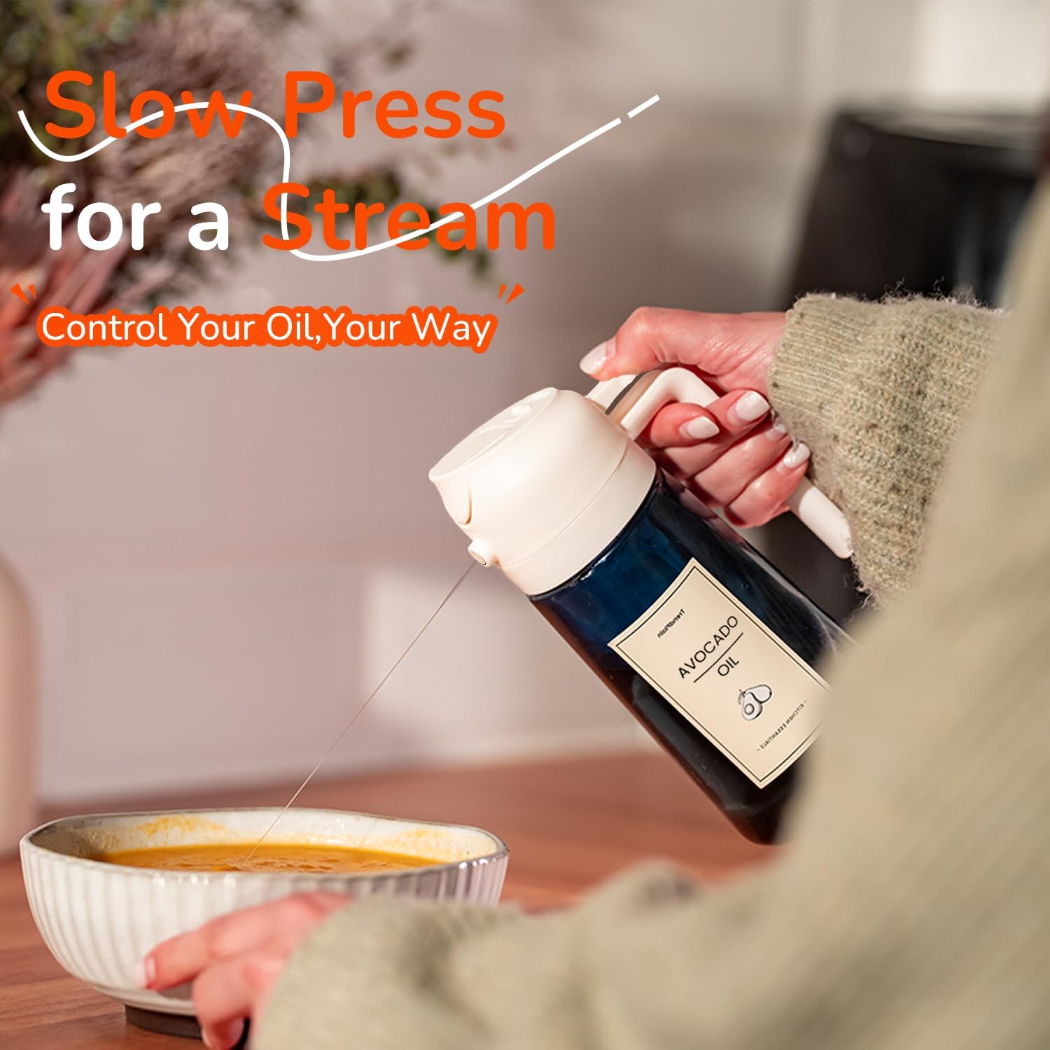 - Innovative Spray Nozzle Design: Offers precise control with a fine mist from quick presses and a steady stream from slow presses. A reliable cooking oil sprayer for all your cooking needs