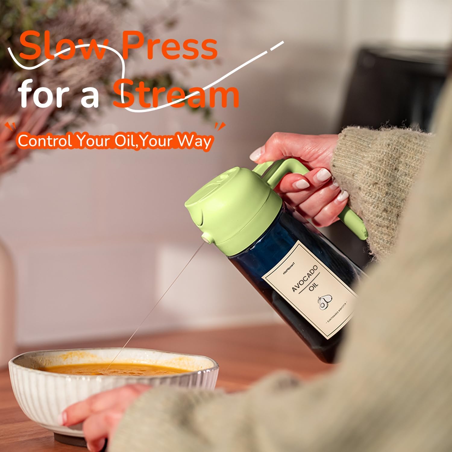 - Dual-Function: This 2 in 1 oil dispenser and oil sprayer offers both pouring and spraying capabilities, making it a versatile solution for your kitchen needs. Switching between the two functions is effortless, keeping your kitchen tidy and efficient