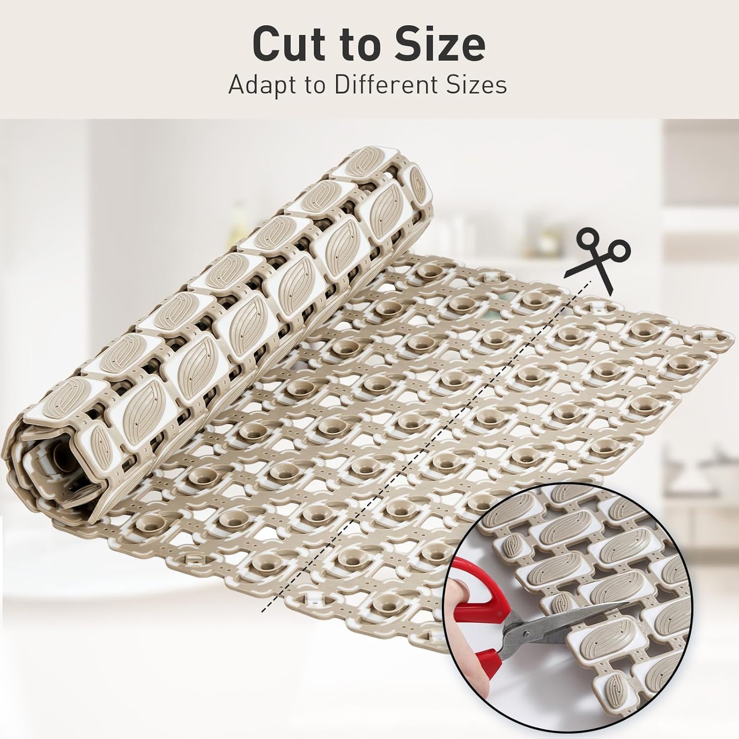 - ✅【Customizable Fit with Easy Trimming】Our long shower mat non slip bath mats for shower tub can be easily cut to size for a perfect fit around irregular spaces, edges, or fixtures without compromising functionality