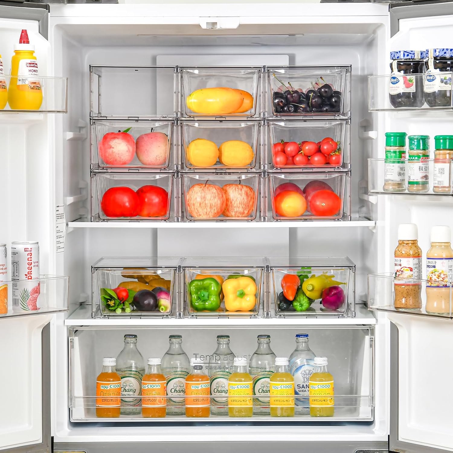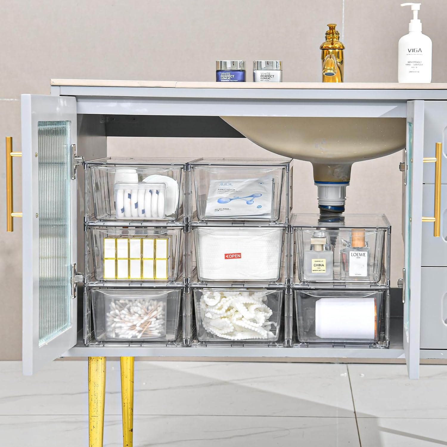 - MULTI-USE ORGANIZER - You can use these bins for various things throughout your home to organize and make your life easier. You can use these clear storage drawers for organizing snacks,drinks,facial maskscosmetics,makeup,medicine,baby bottles and other daily items in pantry,cabinets, bathroom closet,bathroom undersink,say goodbye to clutter in every room of your home