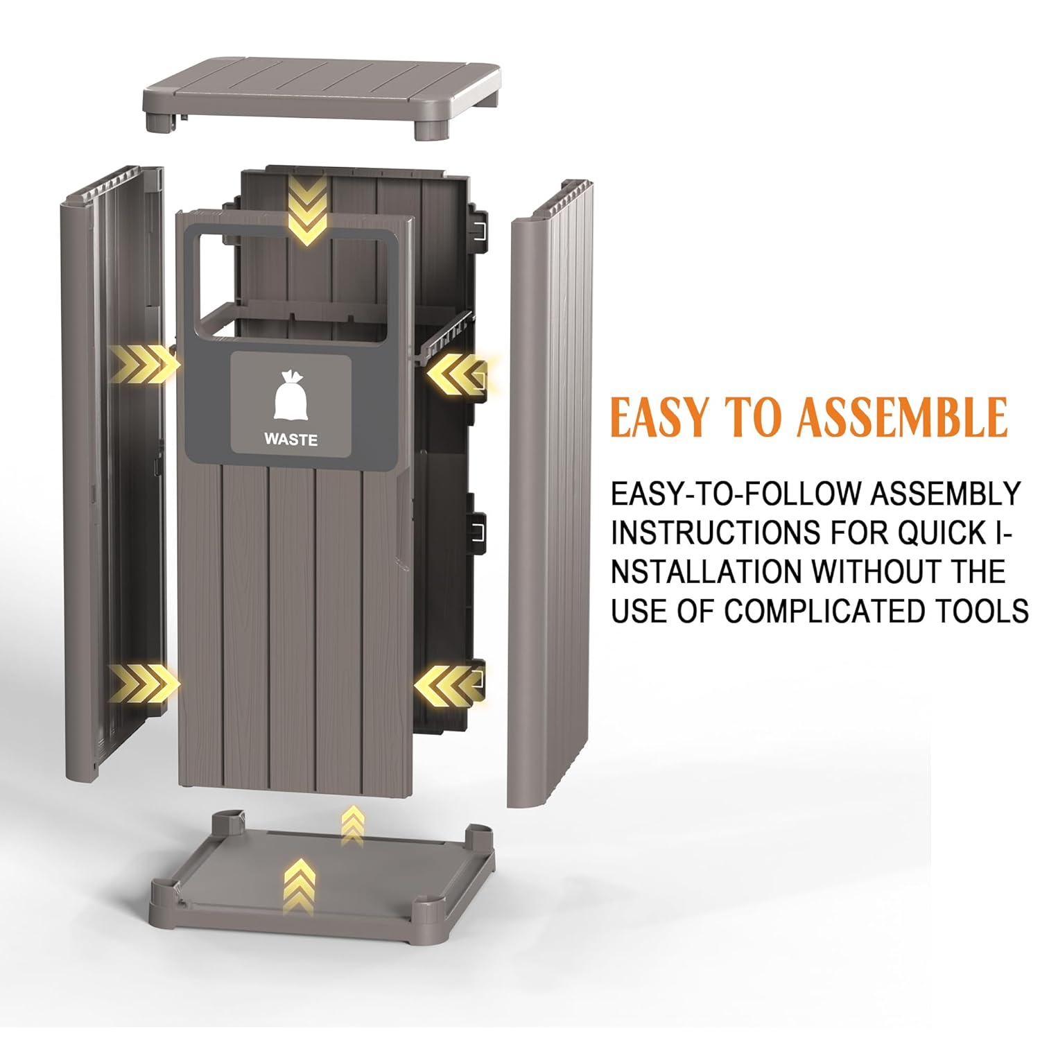 ROJIK 35" Tall Outdoor Trash Can,Weatherproof Resin Garbage Indoor Durable Lightweight,Suitable for Patio Office Kitchen,Easy to Clean,Assemble (Waste,Grey)