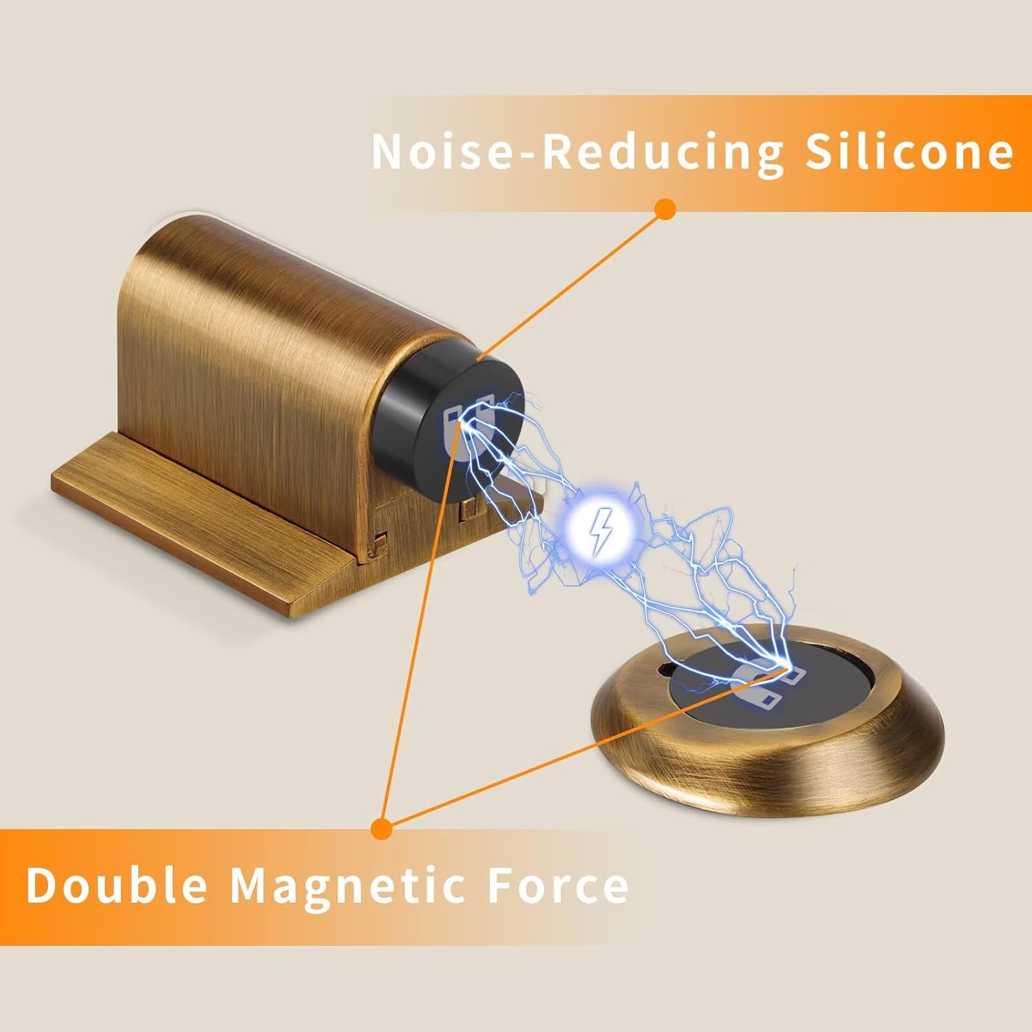 - DURABLE DESIGN: This door stopper is made of high quality zinc alloy and features a dual magnet design for strong suction, it has a soft snap feature to minimize noise, and an electroplated surface to prevent scratches and ensure durability.