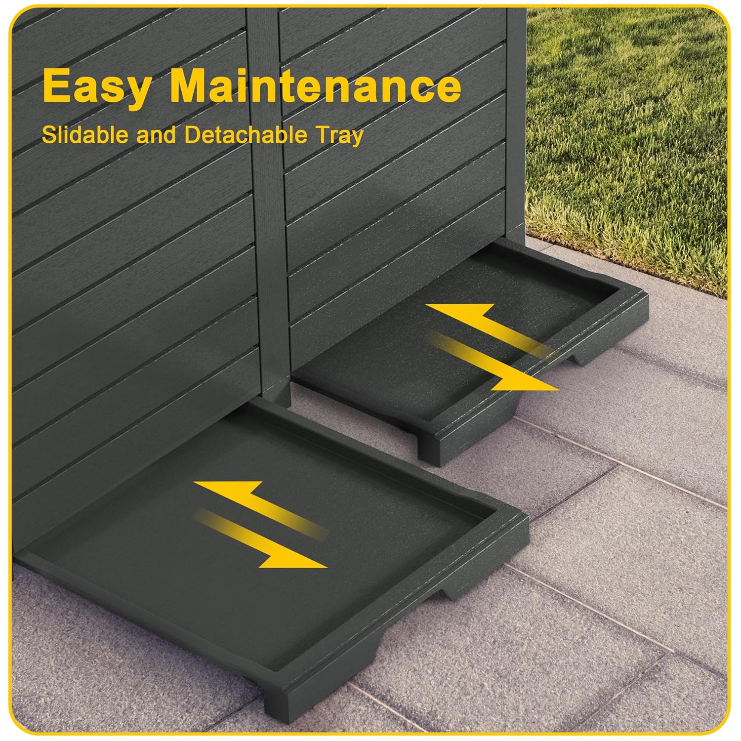 - High Quality Material: The outdoor garbage can is made of durable and recyclable resin material that is waterproof and fade resistant. The panels are sturdy and will not bend, warp or break easily and are highly weather resistant