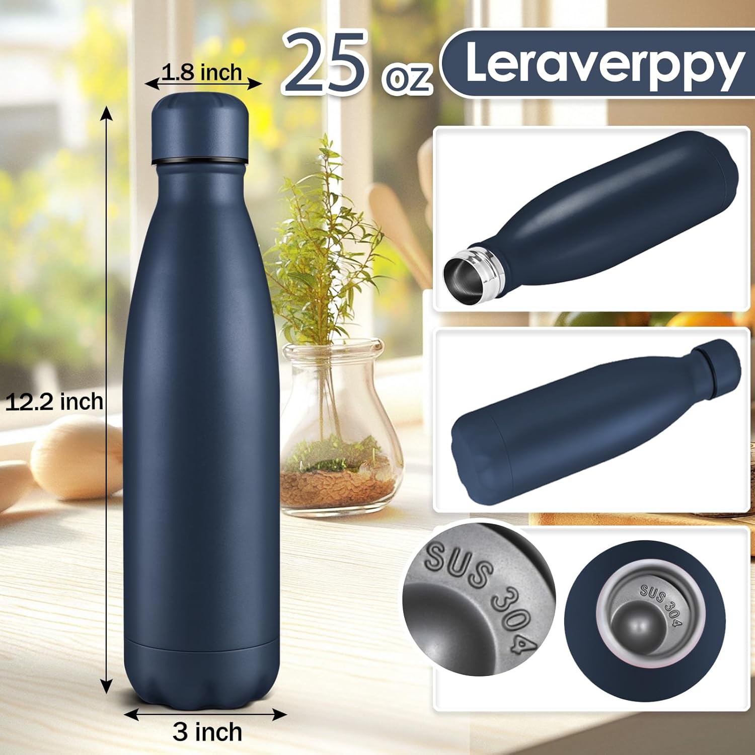 25oz Cola-Bottle Shaped Stainless Steel Leak-proof Water Bottle,Double Wall Vacuum Insulated Metal,Travel Mug For Sports Indoors & Outdoors,BPA-Free School Kids Flasks,Navy(4 Pack)