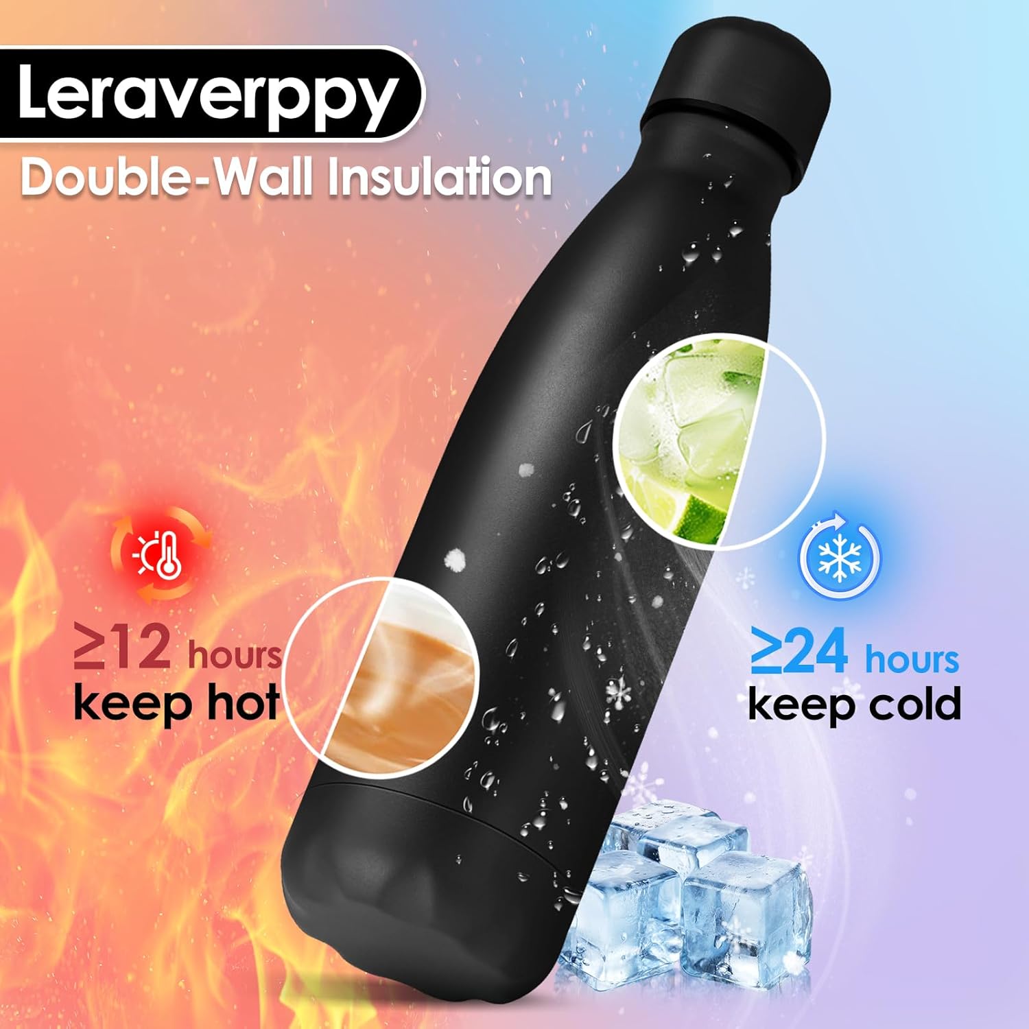 - 《Double Wall Vacuum Metal Bottle and Amazing Gift》This insulated water bottle is double walled and vacuum sealed,which keeping them ice cold for 24 hours and steaming hot for 12 hours.With healthy and reusable stainless steel,our durable everyday water bottle is suitable for everyday use and also as an amazing gift for yourself or your partners friends family colleagues employees teachers etc.