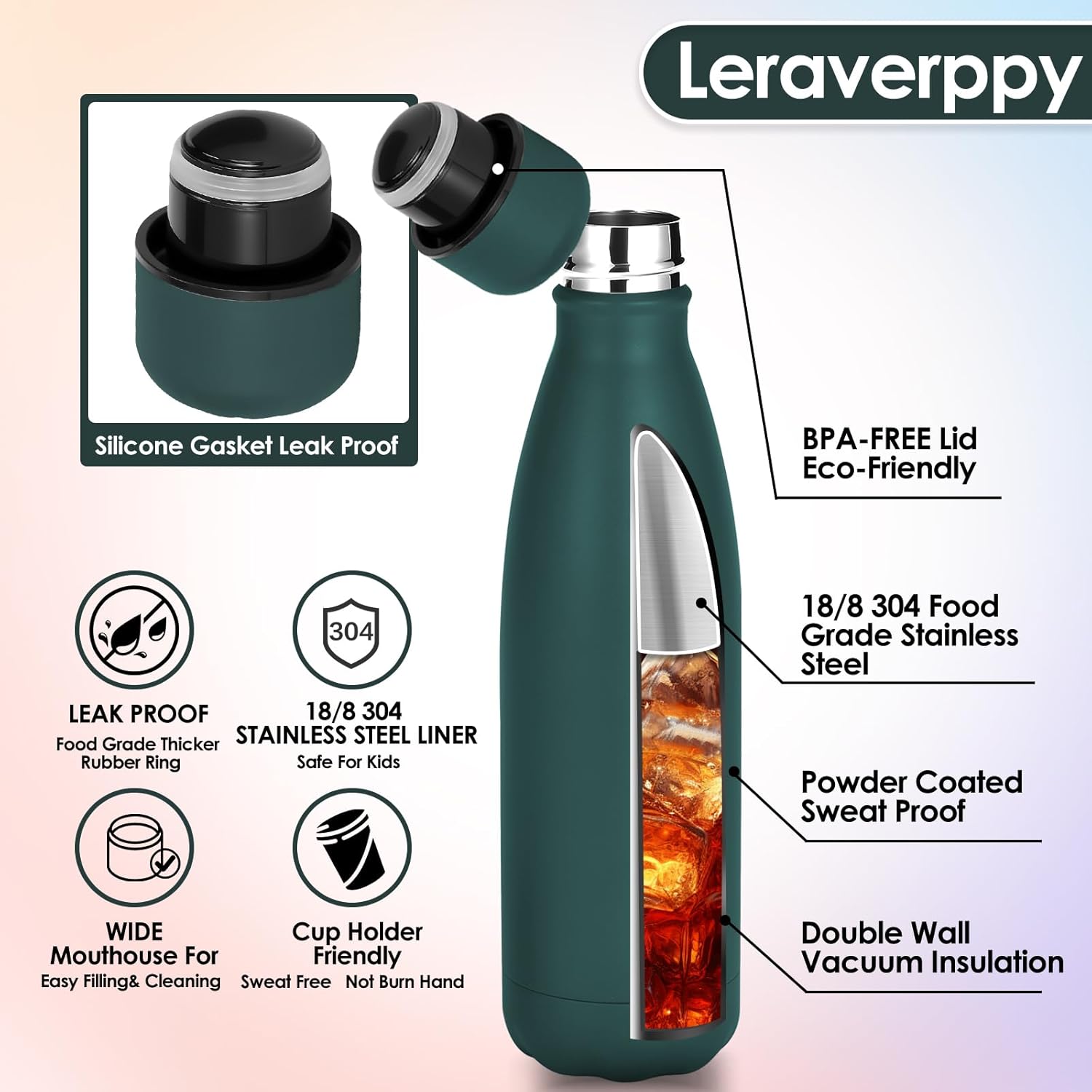 - 《Food-Grade 18/8 Stainless Steel Liner》Our water bottle is made of 18/8 food-grade known as 304 stainless steel.BPA Free,Non-toxic,No metallic taste,safe and healthy for all your water needs.Moms can trust our 304 stainless steel water bottles — designed to keep your little one’s drinks safe and healthy.Drink in the joy of every drop in your healthy life.