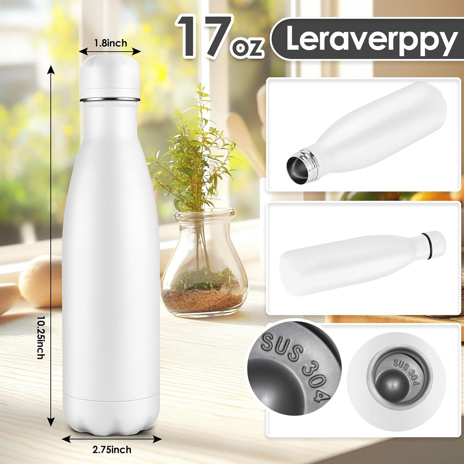 17oz Cola-Bottle Shaped Stainless Steel Leak-proof Water Bottle,Double Wall Vacuum Insulated Metal,Travel Mug For Sports Indoors & Outdoors,BPA-Free School Kids Flasks,White(1 Pack)