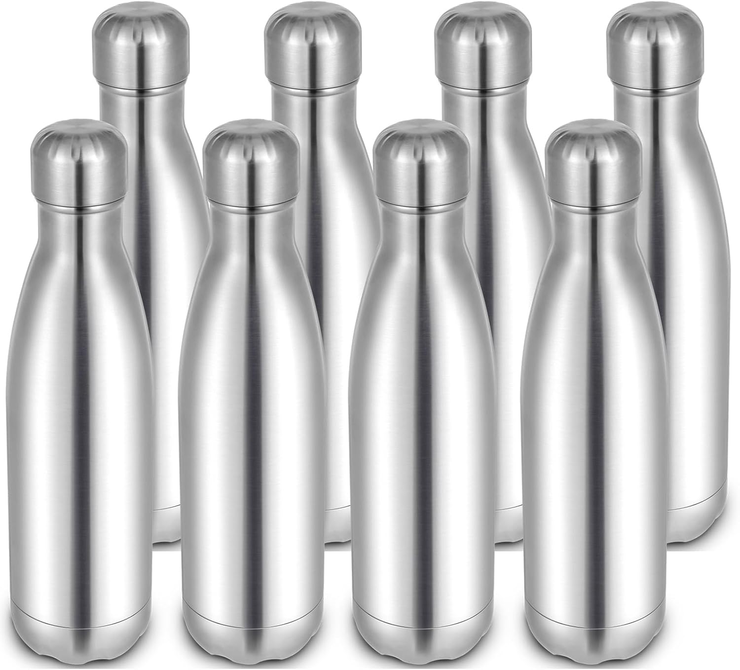 17oz Cola-Bottle Shaped Stainless Steel Leak-proof Water Bottle,Double Wall Vacuum Insulated Metal,Travel Mug For Sports Indoors & Outdoors,BPA-Free Kids Flasks,Silver(8 Pack)