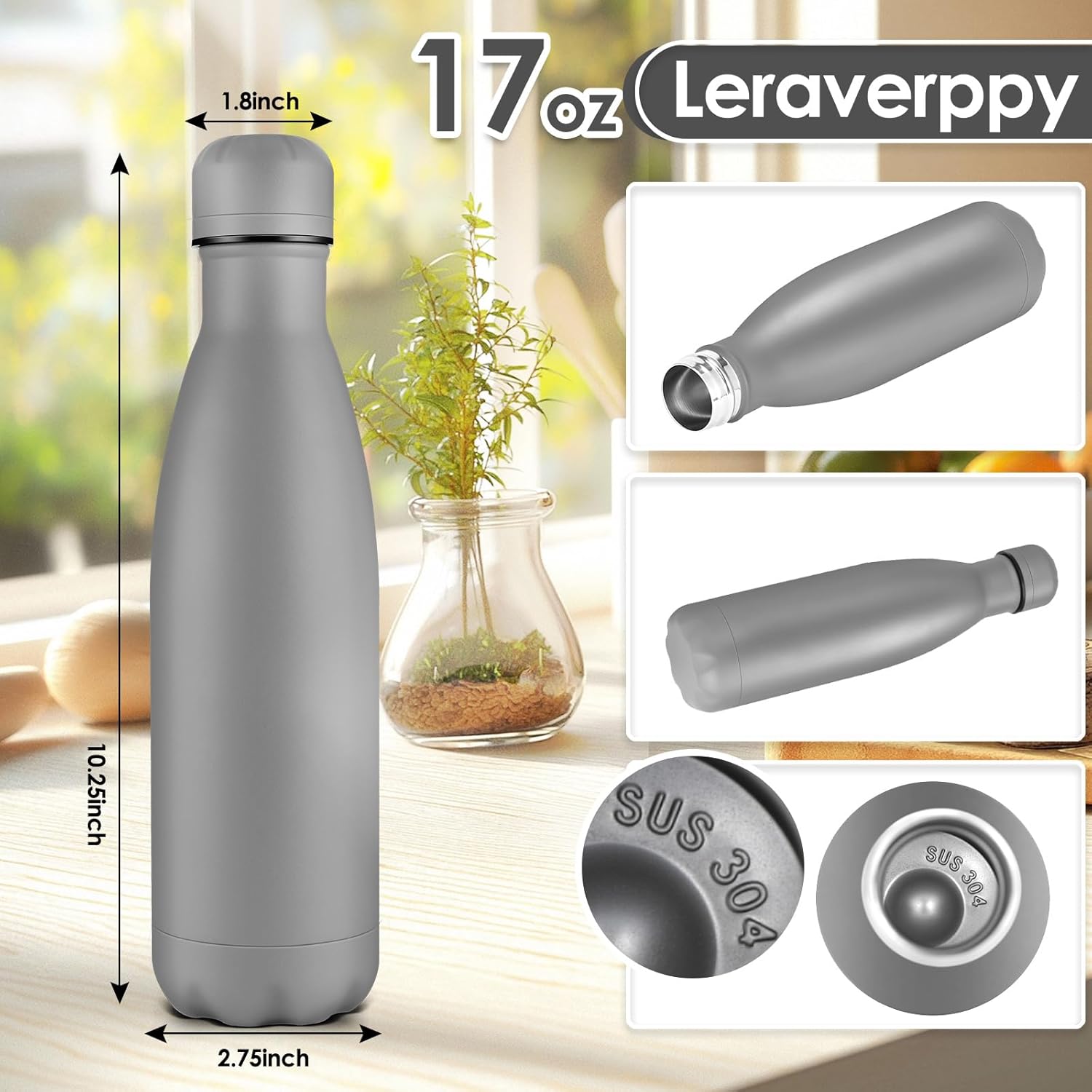 17oz Cola-Bottle Shaped Stainless Steel Leak-proof Water Bottle,Double Wall Vacuum Insulated Metal,Travel Mug For Sports Indoors & Outdoors,BPA-Free School Kids Flasks,Gray(12Pack)