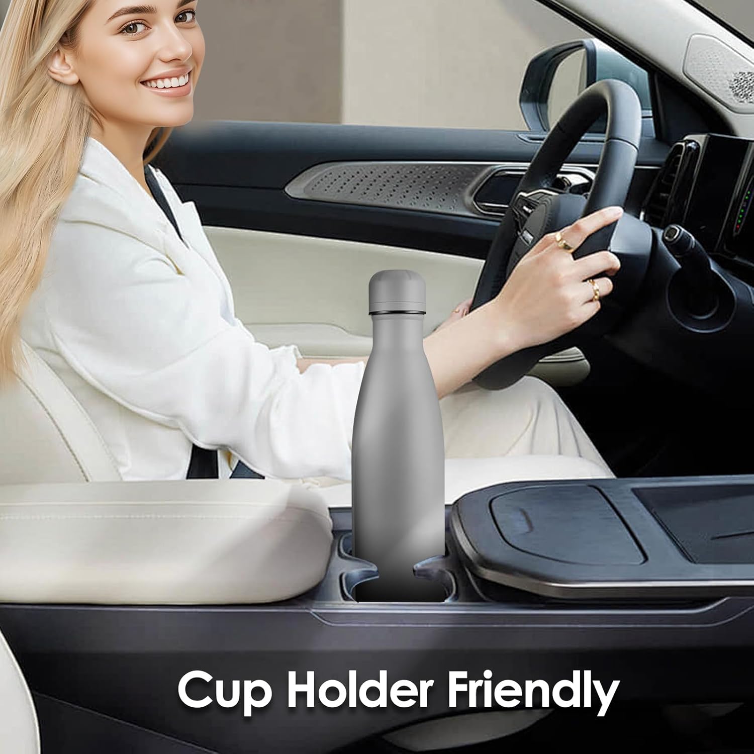 - 《Portable Size and Wide Use》17oz insulated water bottle is the good size for kids and adults.With a portable lid and light weight so you can carry it anywhere with ease.The Convenient bottle is the good choice for the bike or car cup holder,side pockets of backpack,gym,school,work,camping hiking biking beach trips,picnics and any other indoor or outdoor activity.