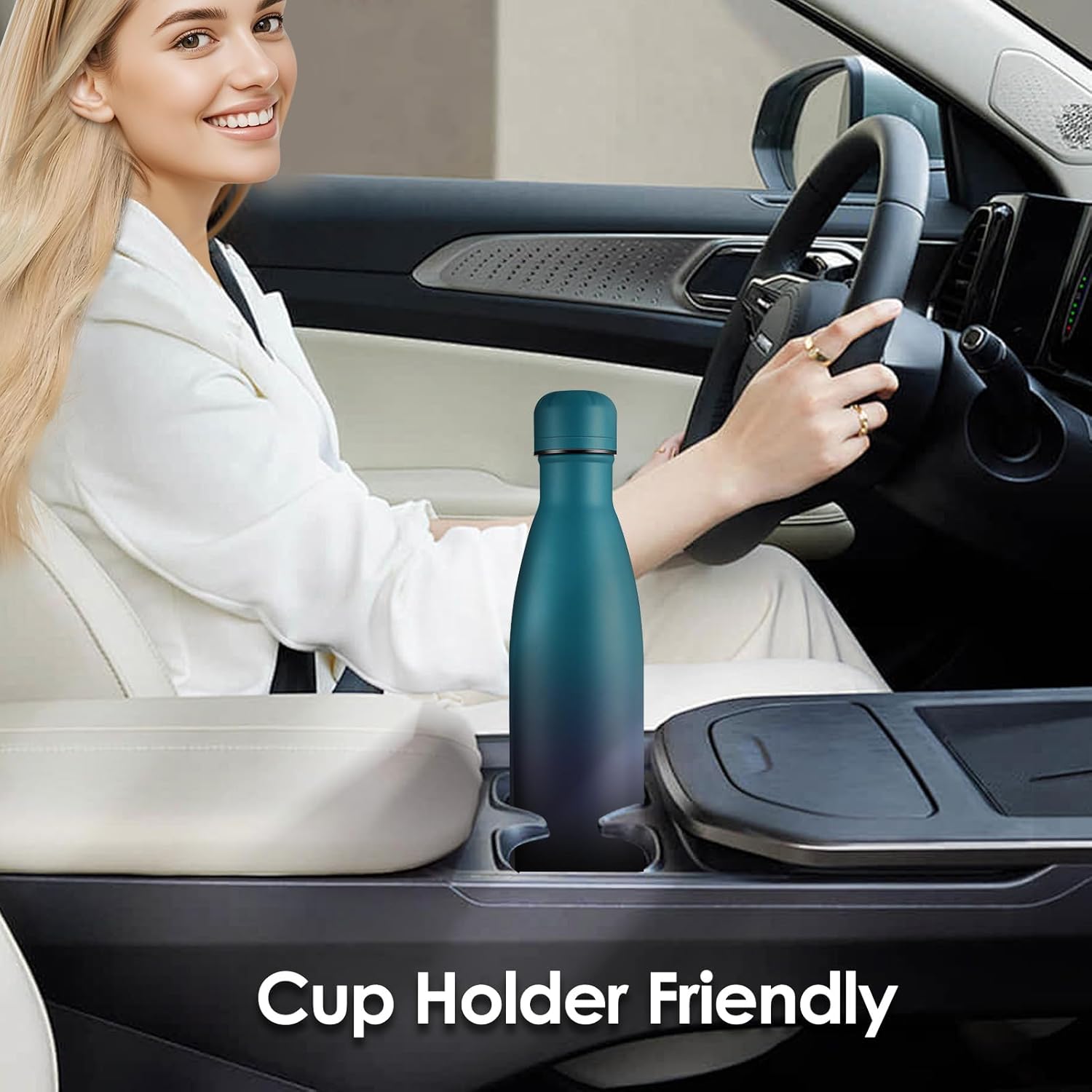 - 《Portable Size and Wide Use》17oz insulated water bottle is the good size for kids and adults.With a portable lid and light weight so you can carry it anywhere with ease.The Convenient bottle is the good choice for the bike or car cup holder,side pockets of backpack,gym,school,work,camping hiking biking beach trips,picnics and any other indoor or outdoor activity.