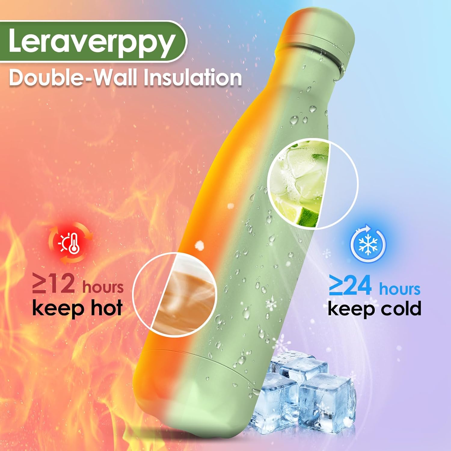 - 《Double Wall Vacuum Metal Water Bottle and Amazing Gift》This insulated water bottle is double walled and vacuum sealed,which keeping them ice cold for 24 hours and steaming hot for 12 hours.With healthy and reusable stainless steel,our durable everyday water bottle is suitable for everyday use and also as an amazing gift for yourself or your partners friends family colleagues employees teachers etc.