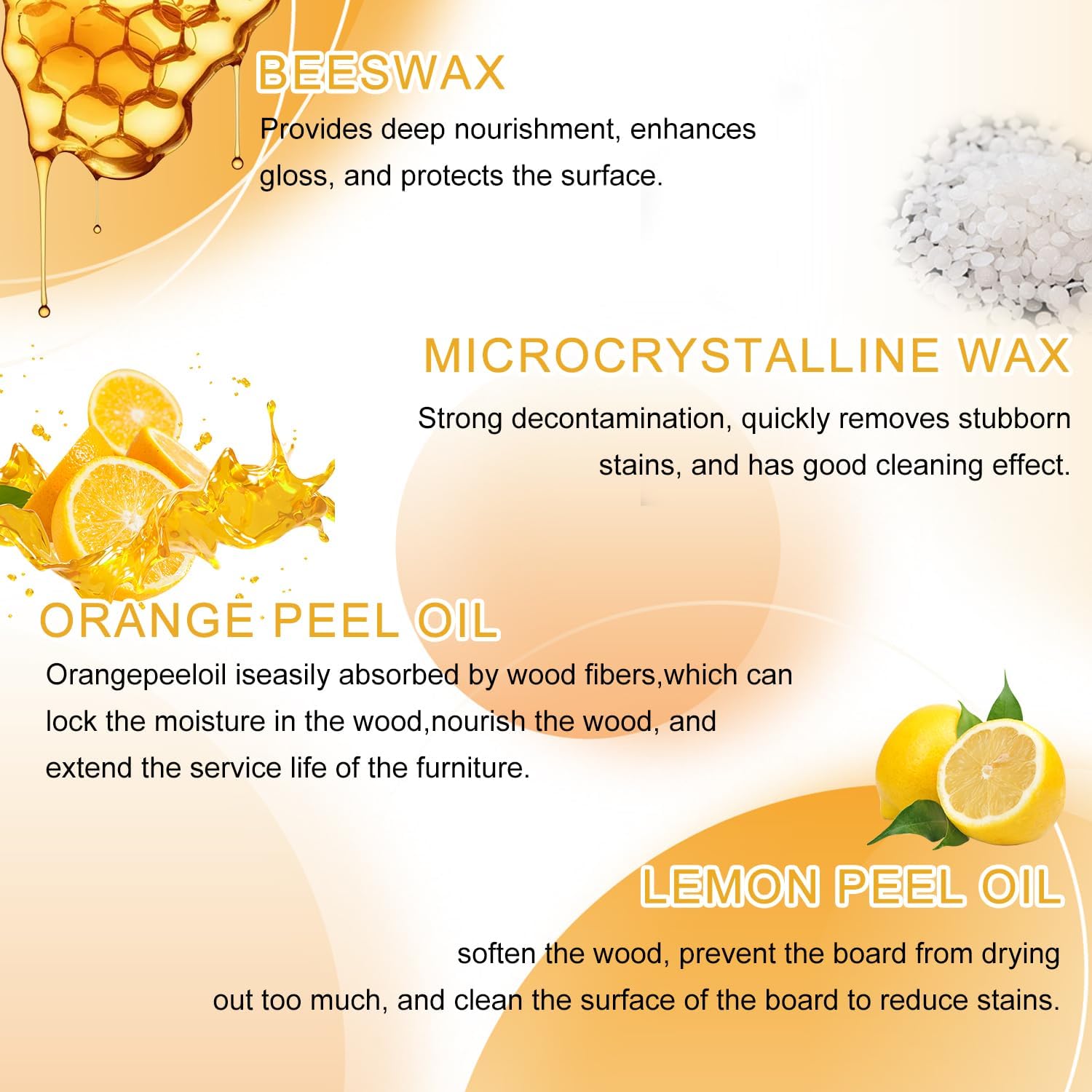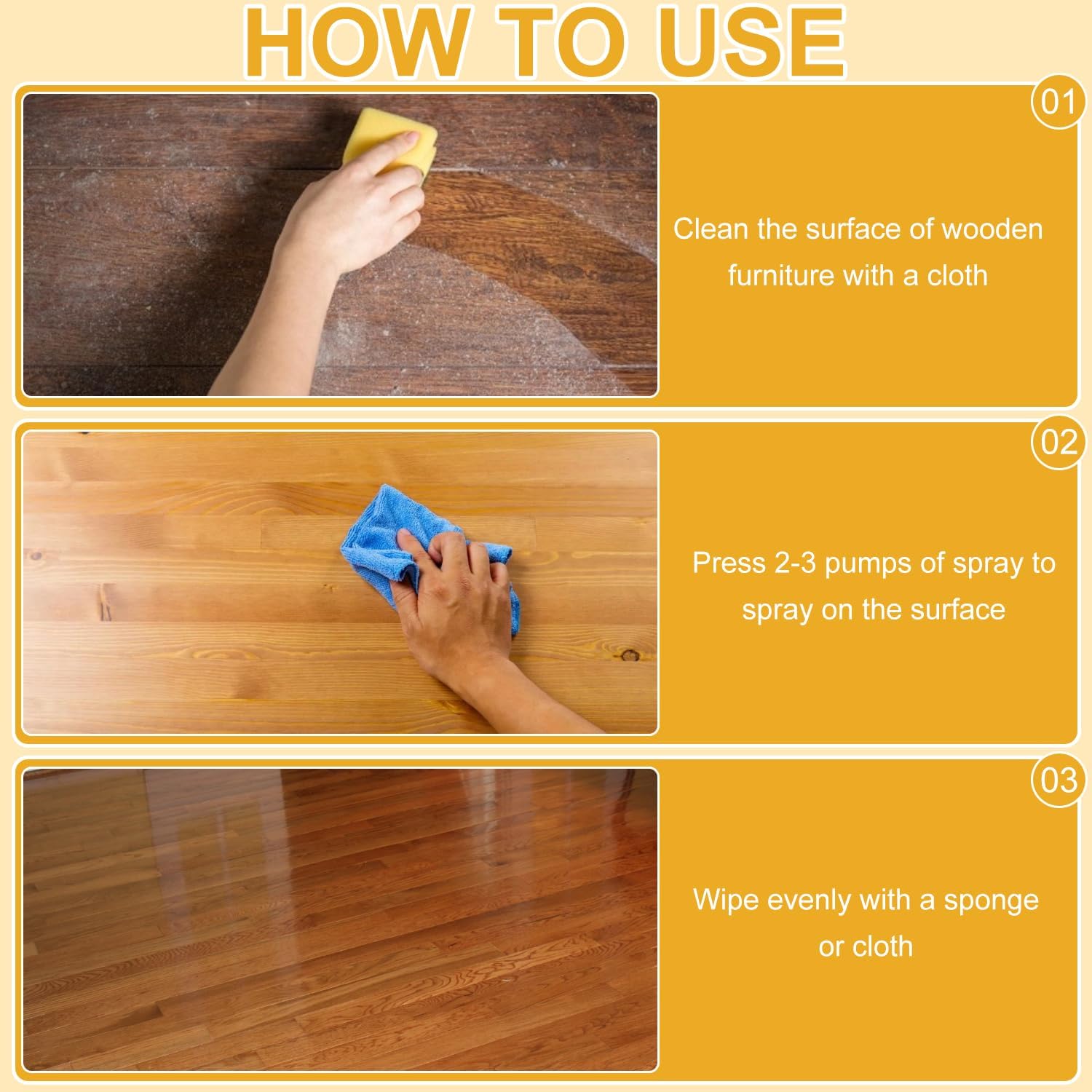 - 【Long-lasting Protection】The natural micro beeswax spray forms a protective barrier, effectively preventing moisture and scratches, extending the lifespan of your furniture and keeping your home always looking radiant