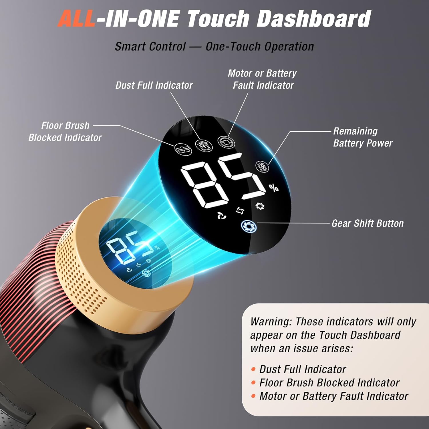- 【LED Smart Touch Screen】 This vacuum cleaners for home features an LED smart touch screen, allowing you to adjust suction power via touch. You can also conveniently monitor battery life, dust cup fullness, and filter maintenance status, enjoying intelligent cleaning. The vacuum’s telescopic handle features an ergonomic design, enabling you to easily adjust the length for different cleaning scenarios.