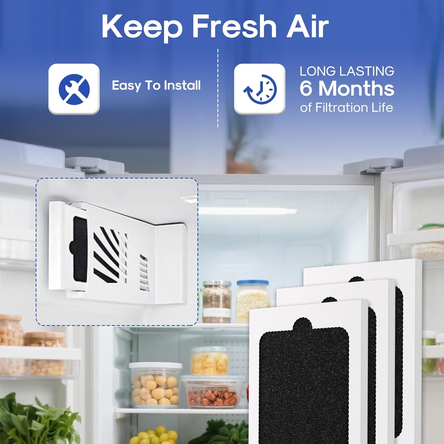 - Long Lasting Freshness - Our refrigerator air filter have a lifespan of up to 6 months. You don't need to replace them frequently, which saves your time and energy. To keep your refrigerator fresh for a long time, we recommend that you replace the filter every six months to keep the food in your refrigerator fresh.