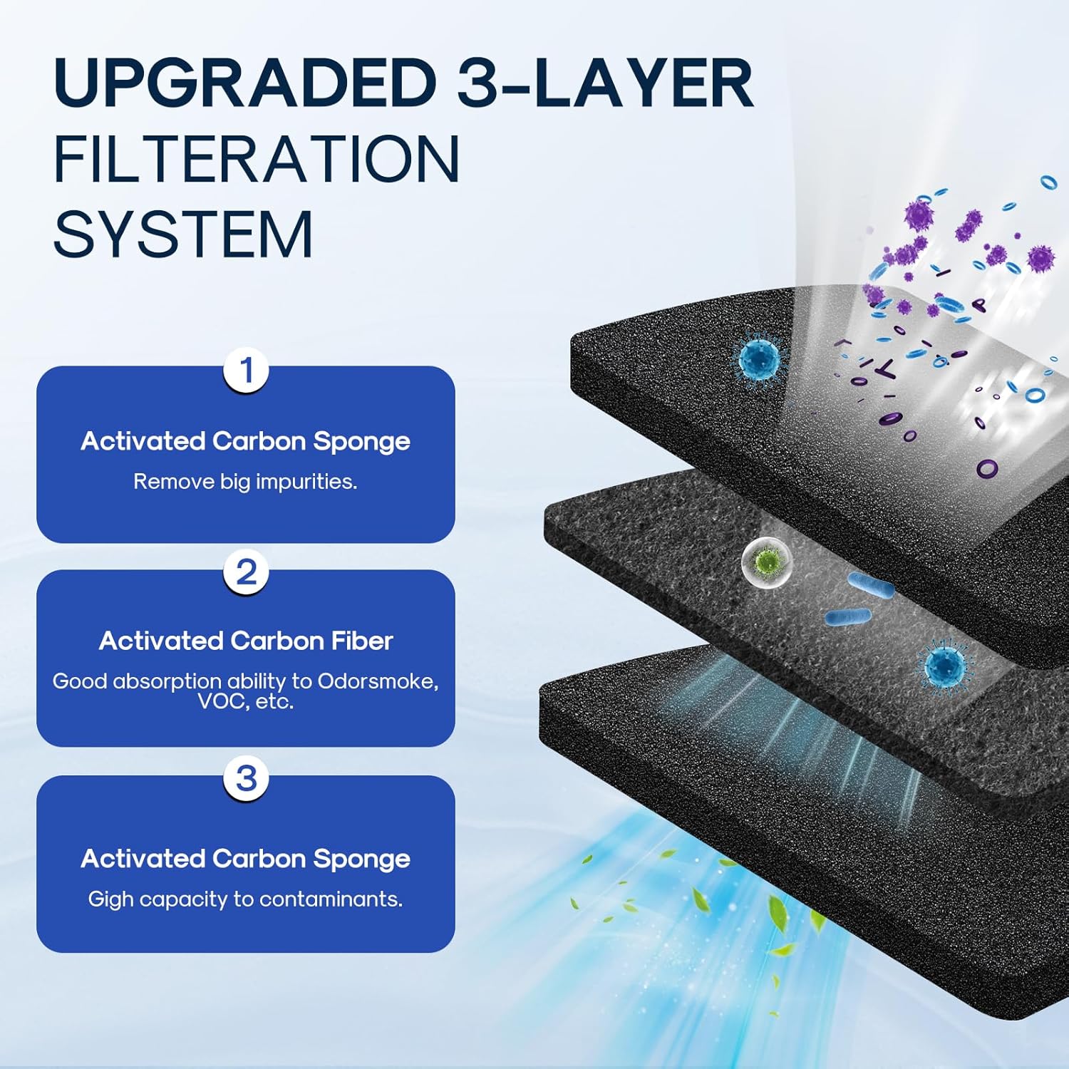 - High Quality Materials - The ICEPURE AF001 refrigerator air filter replacement for EAFCBF, it features high-quality three-layer activated carbon, A-Non-woven Cloth: for removing larger impurities; B-Activated Carbon Fiber: It can effectively adsorb odors and volatile organic compounds to keep the air in the refrigerator fresh. C-Activated Carbon Sponge: High dirt-holding capacity and long service life.