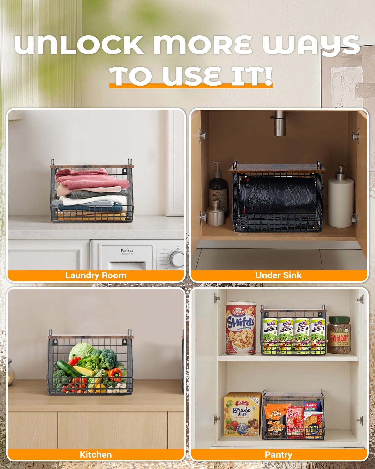 - UNLOCK MORE WAYS TO USE IT! Thanks to its large opening, this bag holder is more versatile than ever. Use it in your laundry room for clothes or towels, in the kitchen for onions, potatoes, or tomatoes, in your pantry for food storage, under the sink for trash bags and cleaners, or even in your RV for on-the-go organization.