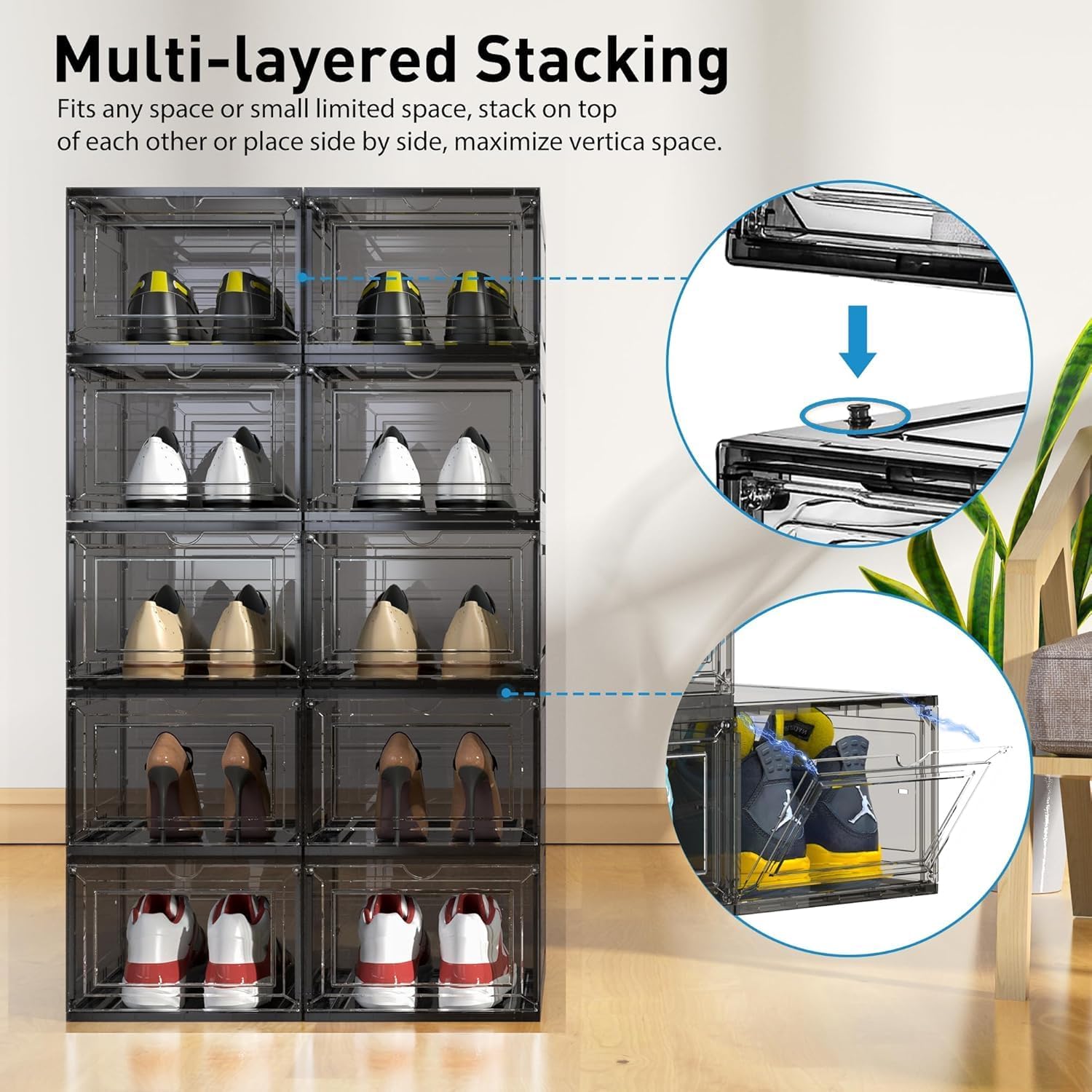 - Stable Stacking:Our shoe box use a simple locking design, allowing for stable stacking without tipping over.