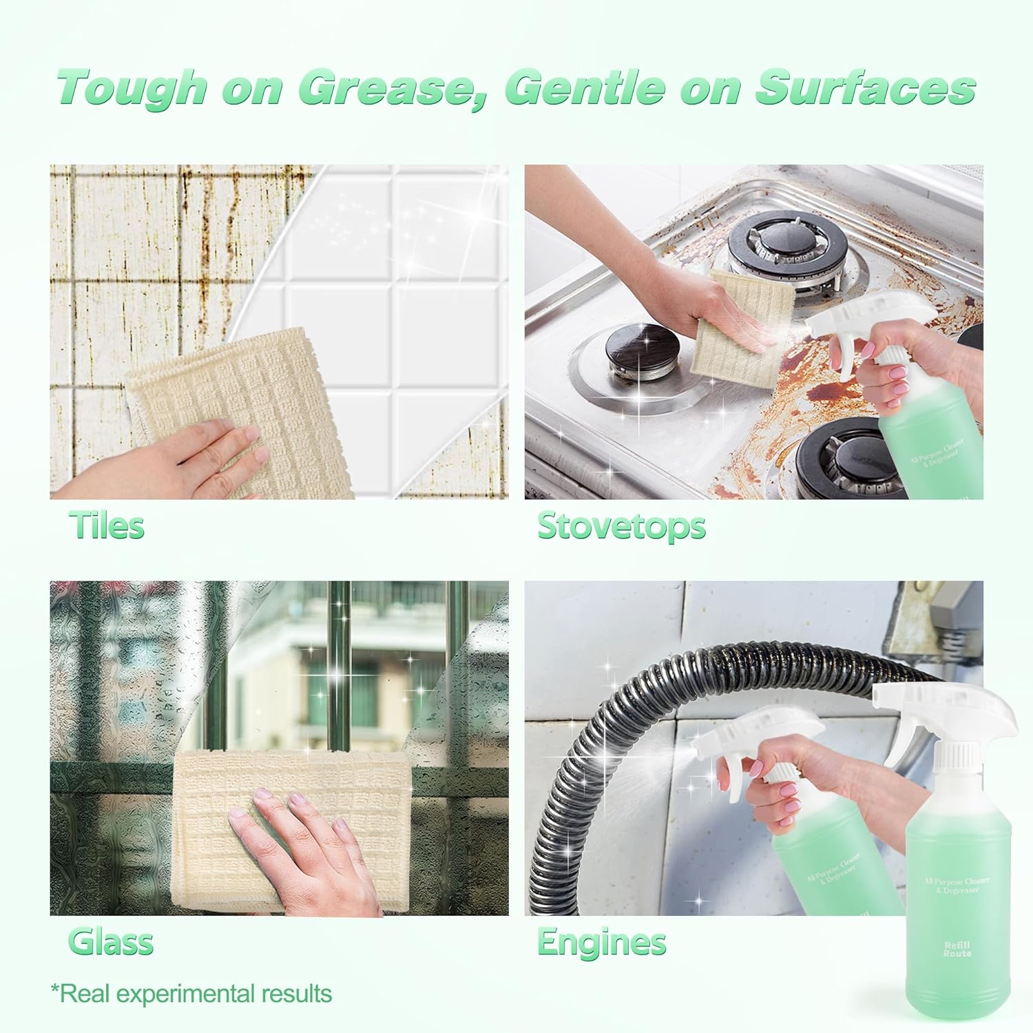 - 💰 【Complete Starter Kit - Smarter Cleaning for Less!】 1 premium all purpose cleaning spray bottle, 12 stove-top cleaner tablets (makes 192oz cleaner), dual-texture scrub towels, Compact tablets take 10x less storage than liquid kitchen cleaner bottles