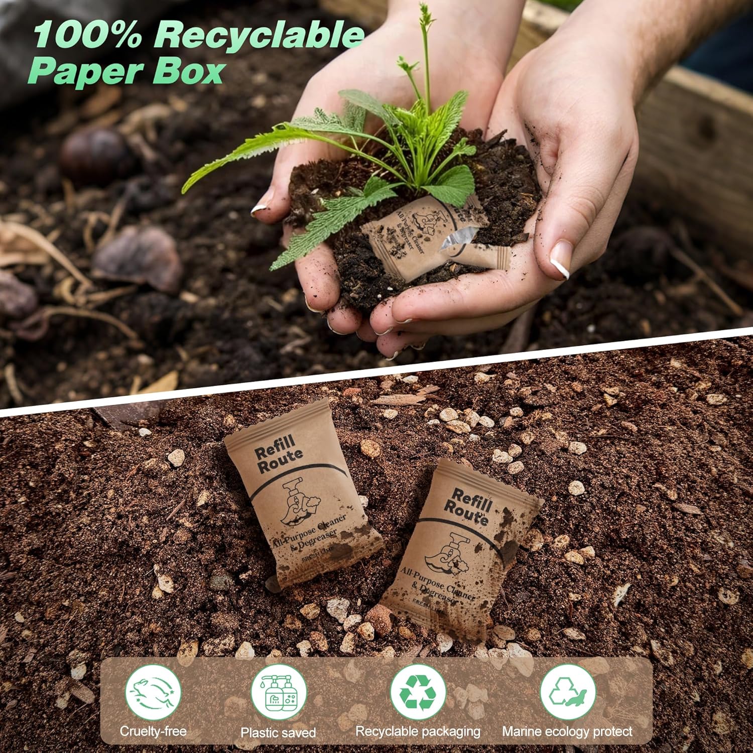 - 🌎【 Eco Warrior - 1 Tablet = 1 Less Plastic Bottle!】 Refillable splash spray tablets & spray bottle system saves 11+ plastic bottles per pack. Compostable packaging. Meanwhile Every purchase funds removal of 16oz ocean plastic