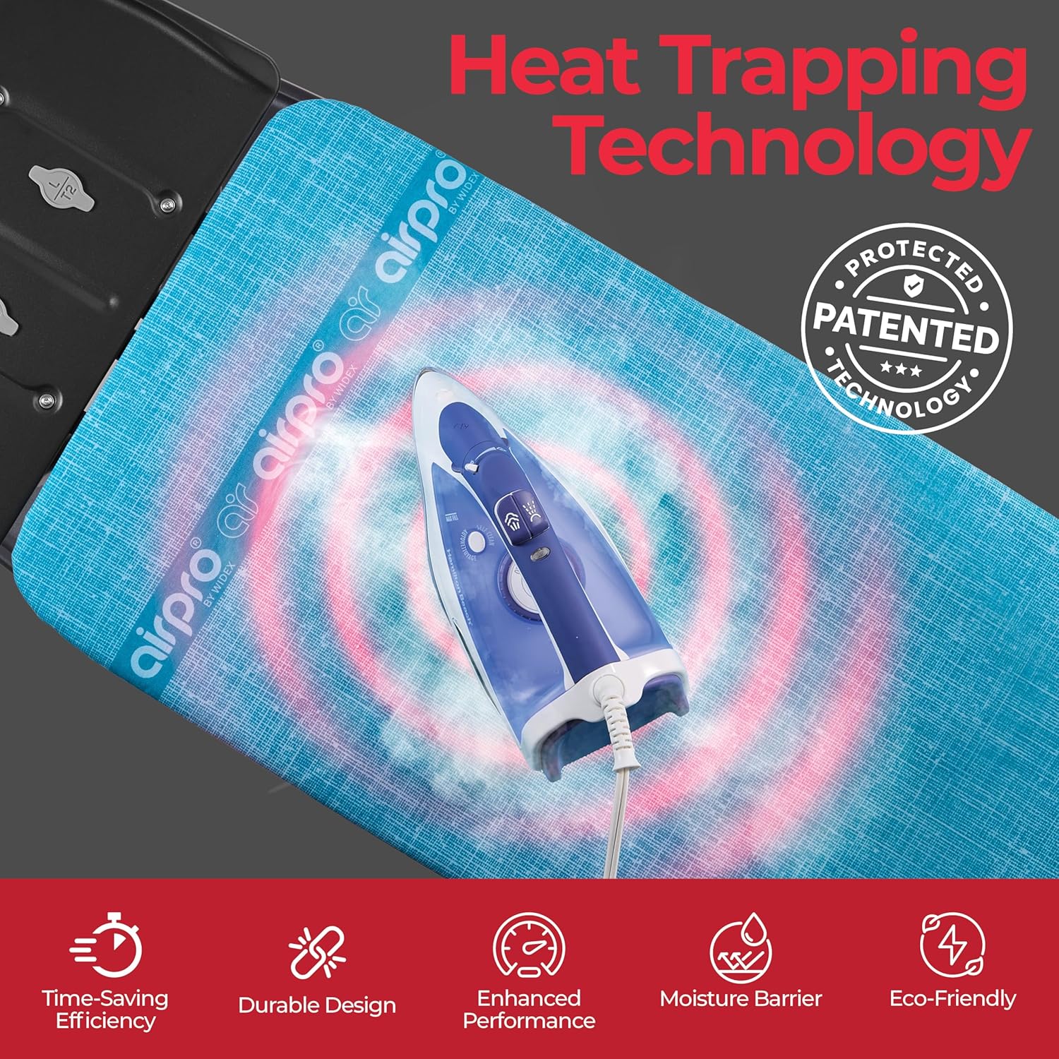 - Patented 5-Layer Cover: Advanced steam-reflecting technology helps iron clothes faster and more efficiently with less effort.