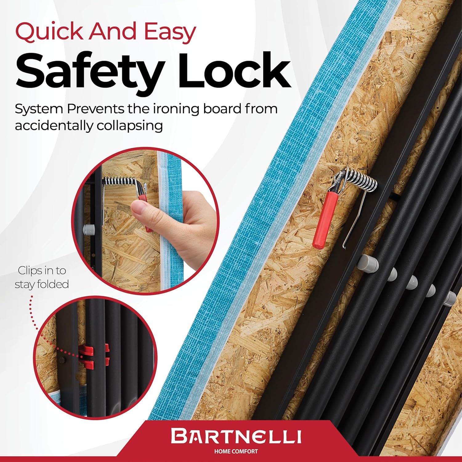 Bartnelli Next-Generation Innovative Wooden Top Ironing Board, with Breakthrough Patented 5-Layered Steam-Reflecting Cover, Made in Europe, Adjustable Height, 4 Heavy Duty Durable Steel Legs, 46x16”