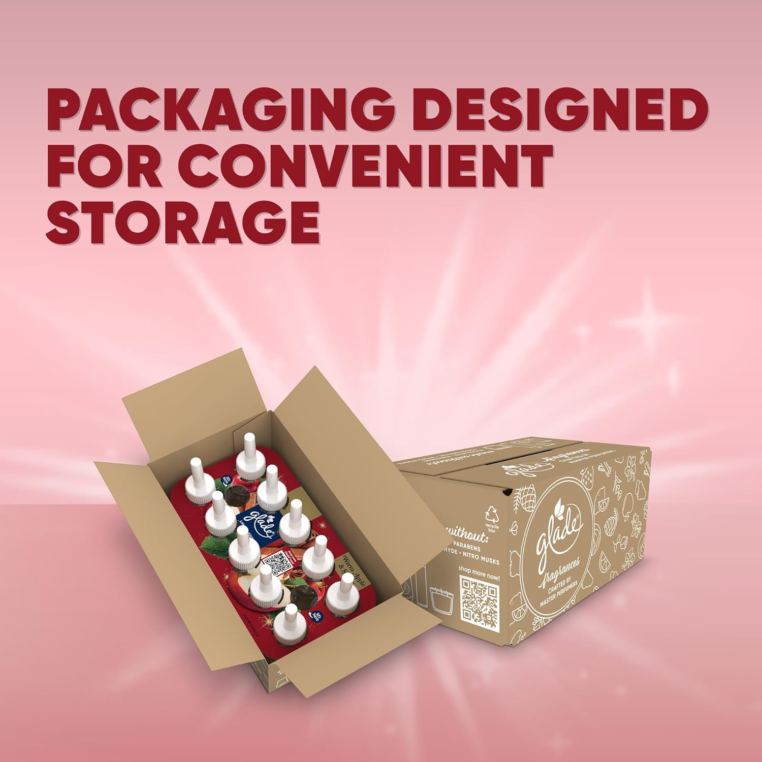 - Also try the Warm Apple & Spices scent as a Glade air freshener spray, 3-wick candle, wax melt, or automatic spray