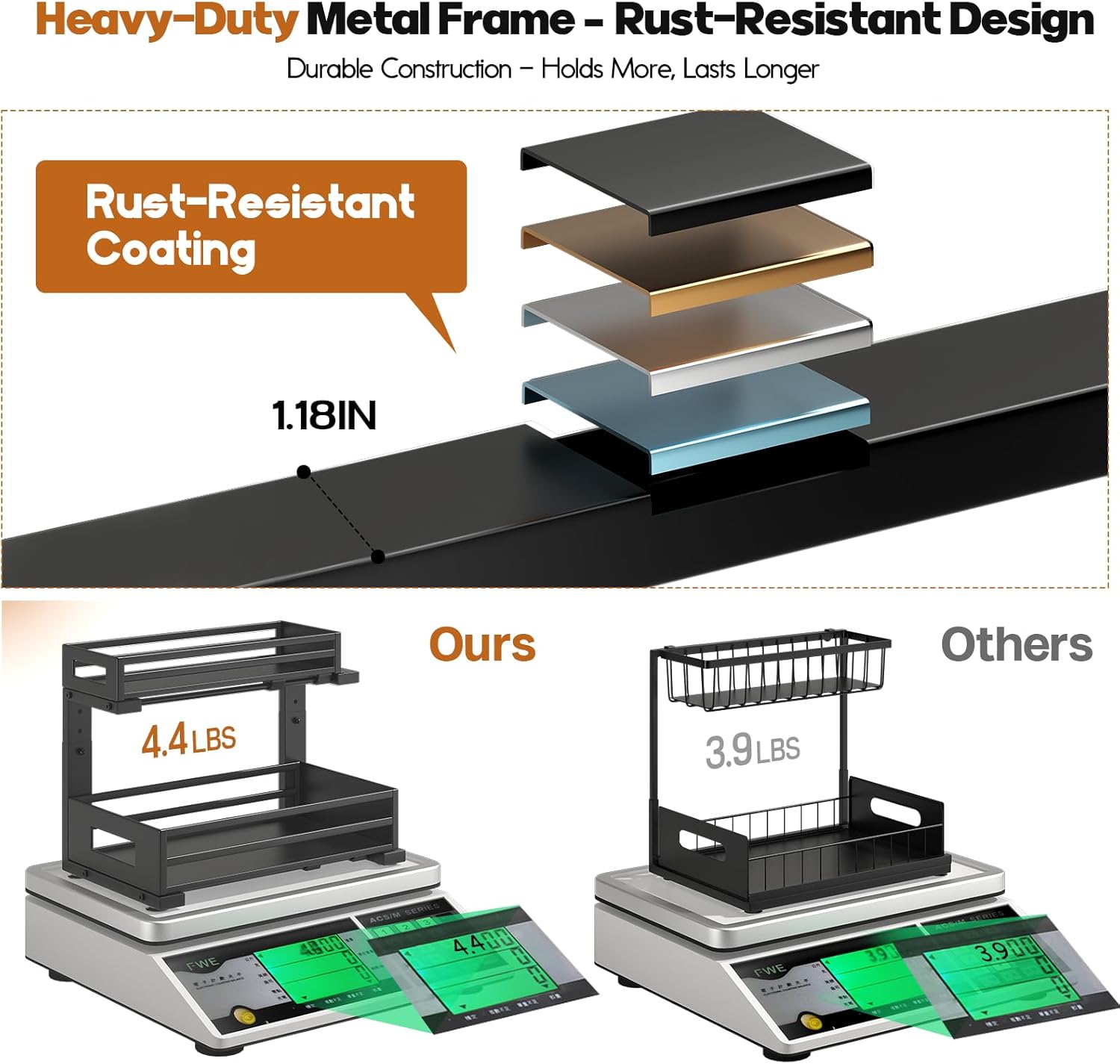 - 【Sturdy metal sheet frame&Rust-Proof】The under sink organizer is built from solid metal sheets with a strong frame and superior rust-resistant design, making it durable and ideal for long-term use in humid areas like kitchens,bathrooms and Laundry Room.