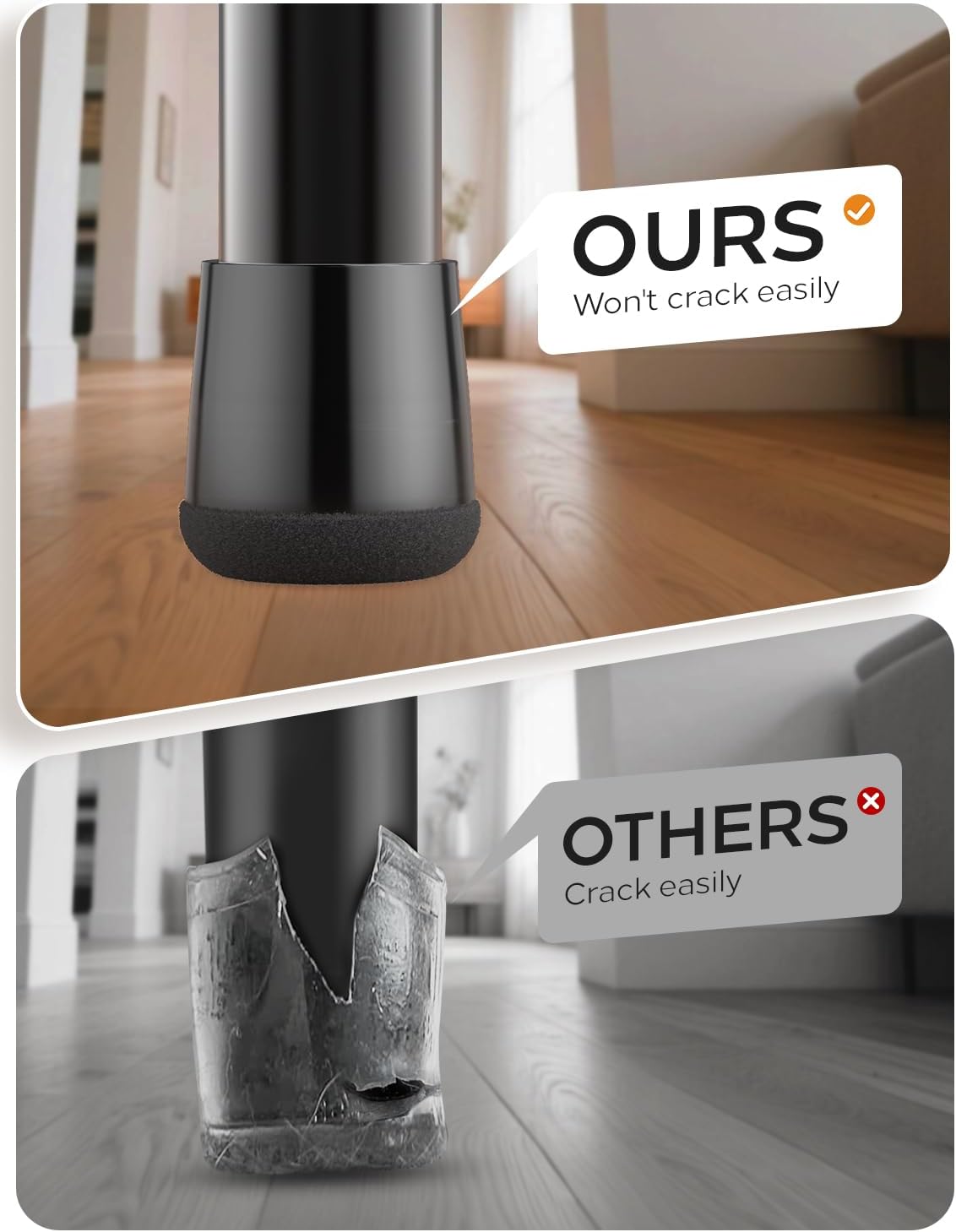 - 360° Felt-Bottom floor protectors- 360 ° fully wrapped felt design. Made from high-density industrial felt and flexible silicone to withstand daily wear, heavy chairs, and frequent movement without tearing or flattening, ensuring long-lasting floor protection.