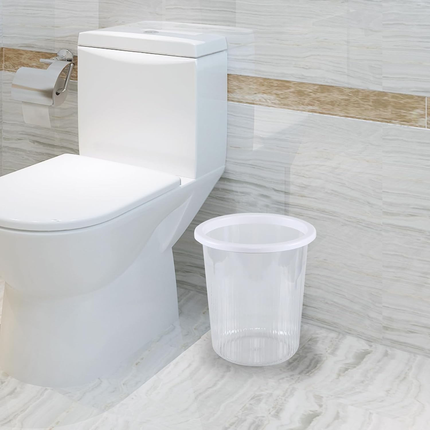 - The top of the trash can is equipped with a plastic ring to secure the garbage bag and prevent it from slipping off