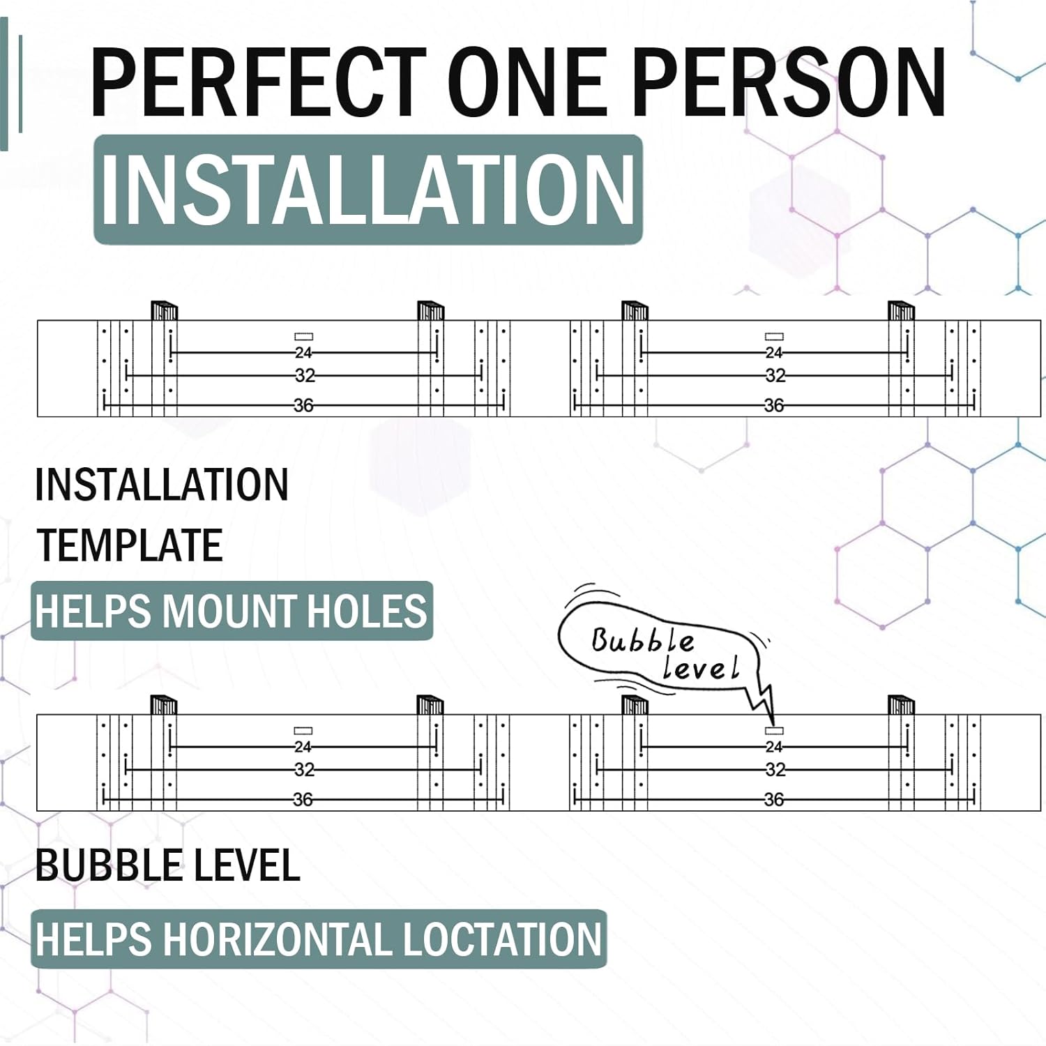 - 【Quick – Secure Setup】: Easy one-person installation with all hardware included: Installation Template helps mount holes; Bubble Level helps get perfect horizontal location.