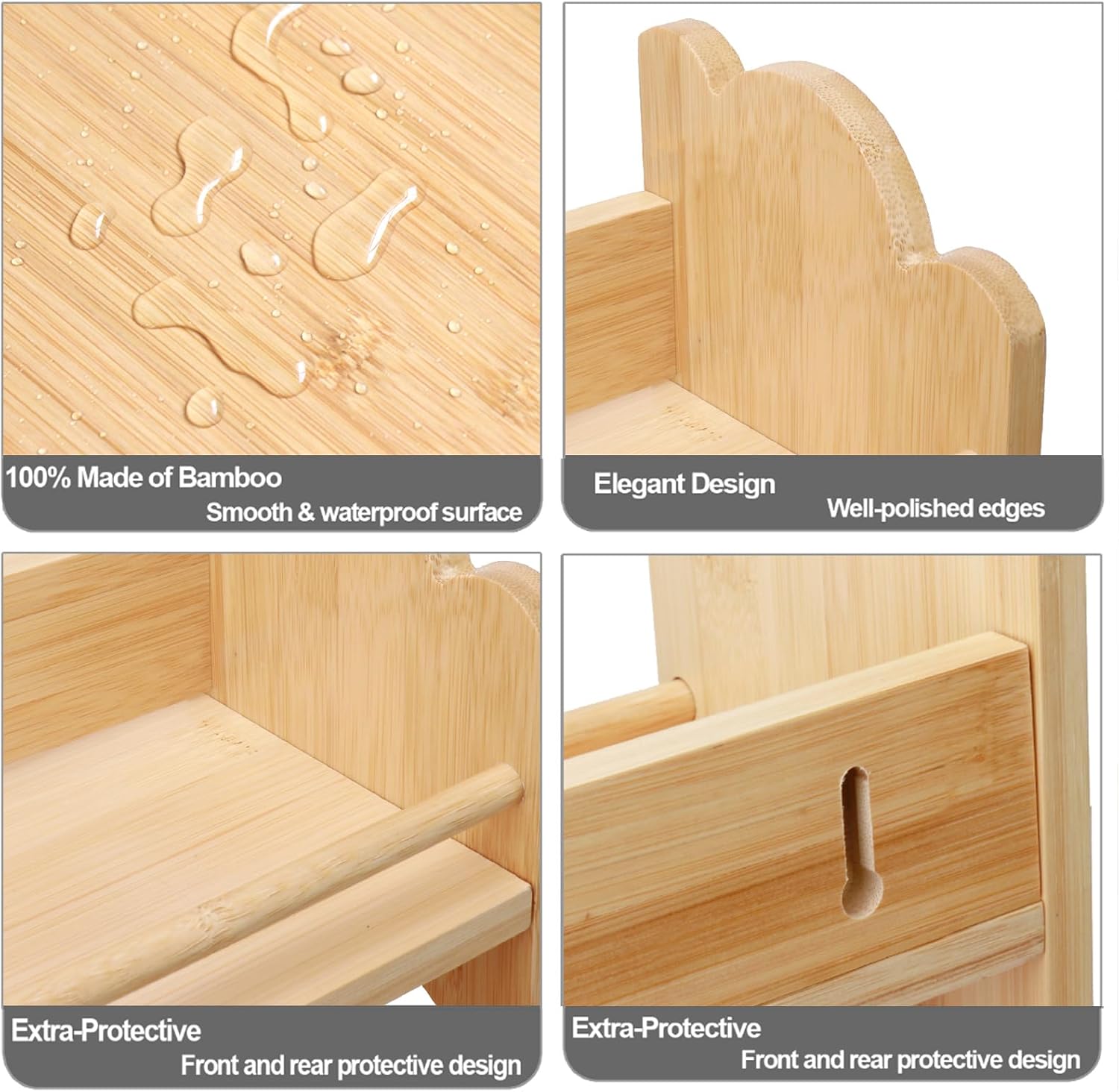 - Special Feature : 100% Natural Bamboo, Freestanding, Front and Rear protective, Innovative Handles, Wall Mounted