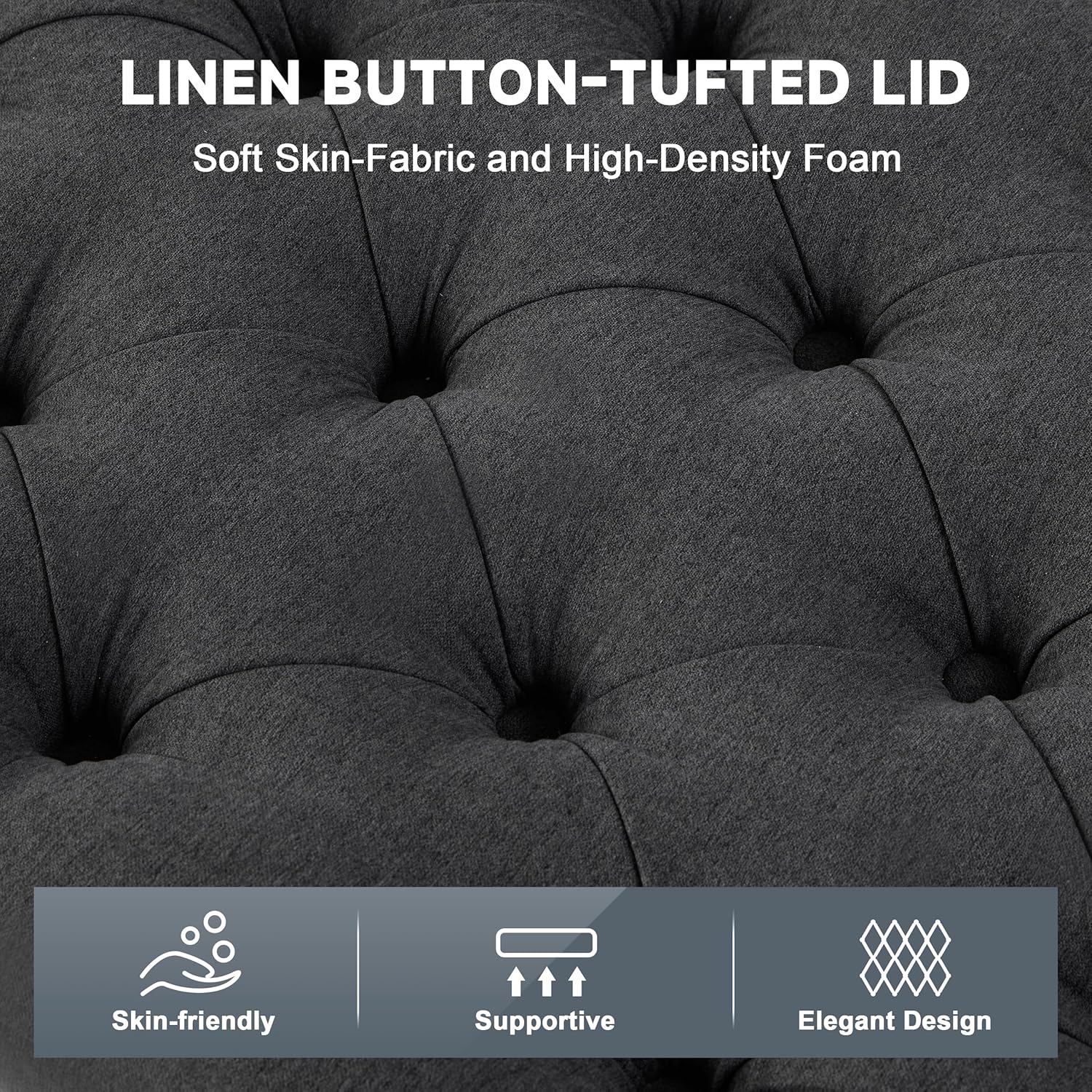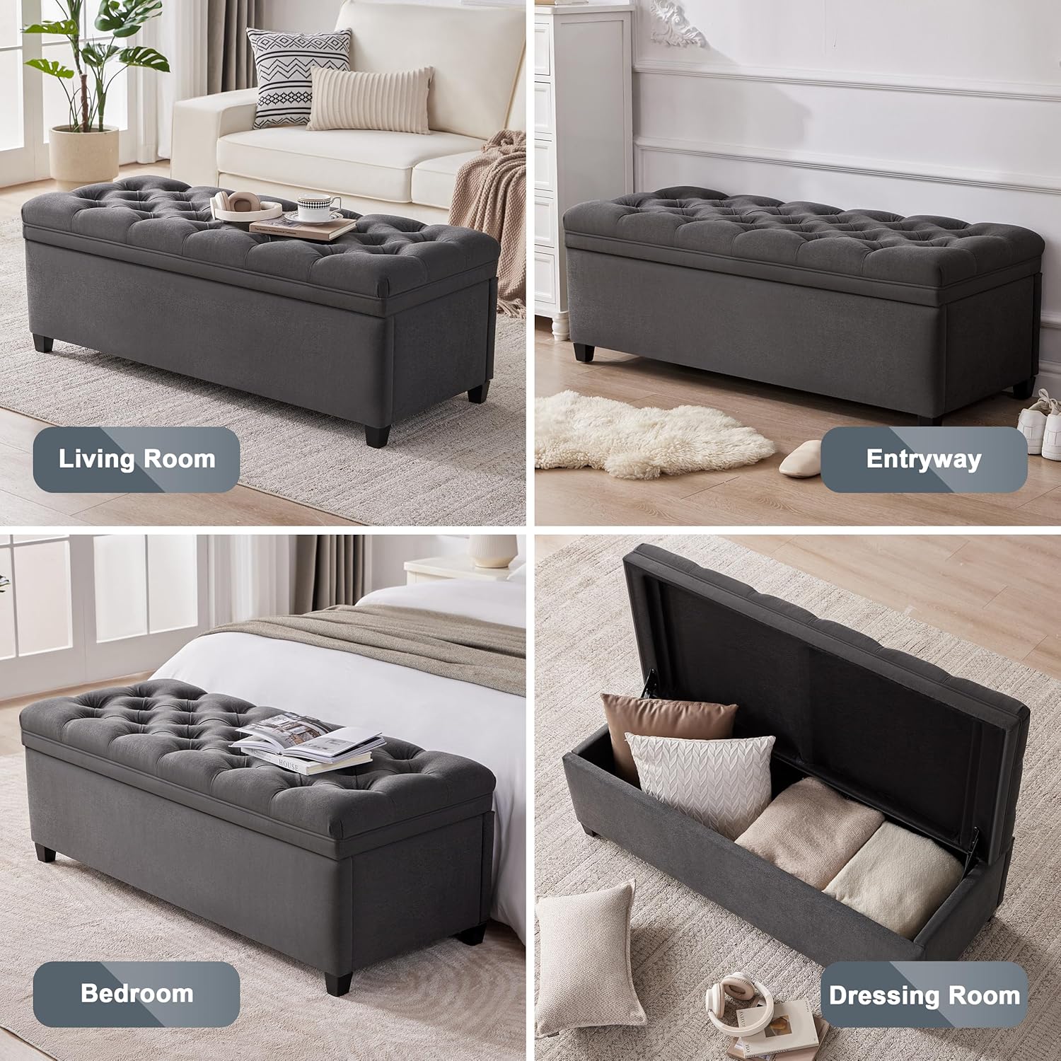 50" Storage Ottoman Bench, Tufted Ottoman with Storage for Living Room, Large End of Bed Ottomans, Modern Entryway Benchs, Window & Bedroom Benches for Foot of Bed (Darkgray)