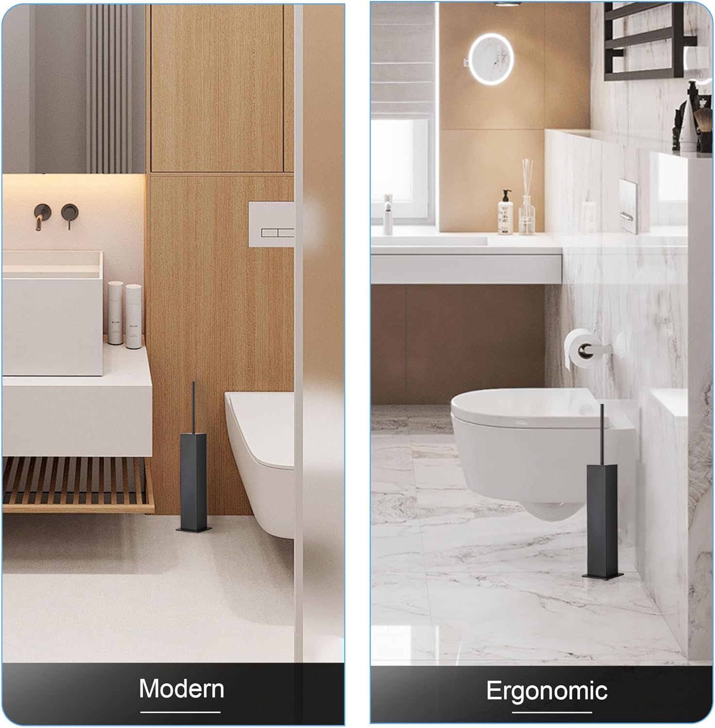- Sleek Modern Bathroom Accessory with Compact Footprint – This modern toilet brush combines minimalist aesthetics with functionality, fitting neatly beside your toilet without hardware. Its slim profile is perfect for small bathrooms, powder rooms, and tight corners.