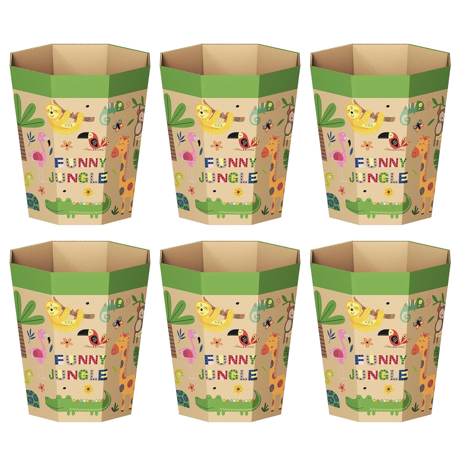 6-Pack Cardboard Trash Can – Foldable, Recyclable, Plastic-Free & Reusable Small Waste Paper Basket for Kids - Garbage Bin Perfect for Bedrooms, Playrooms, Children's Room & Outdoor (3.2 Gallon)