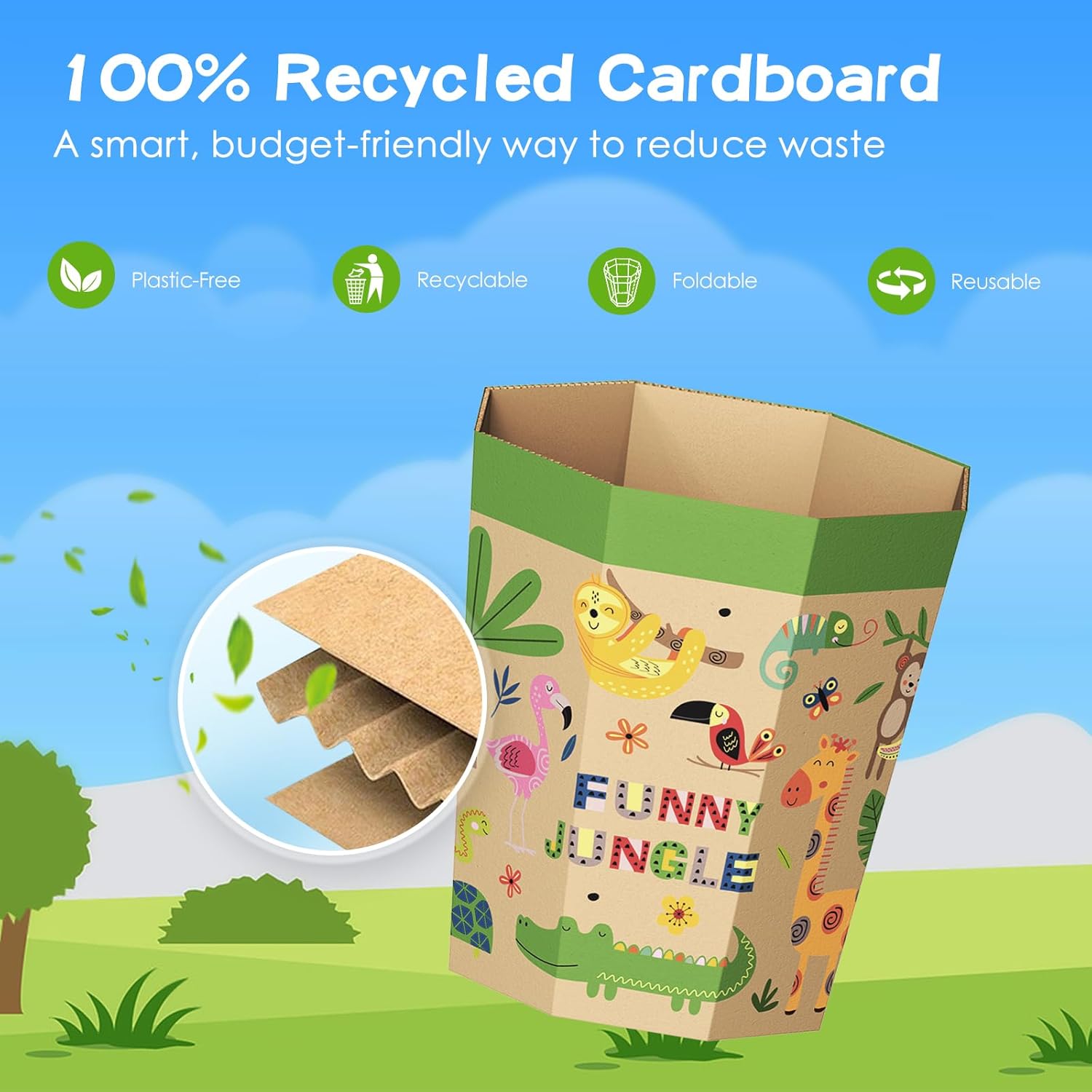 6-Pack Cardboard Trash Can – Foldable, Recyclable, Plastic-Free & Reusable Small Waste Paper Basket for Kids - Garbage Bin Perfect for Bedrooms, Playrooms, Children's Room & Outdoor (1.6 Gallon)