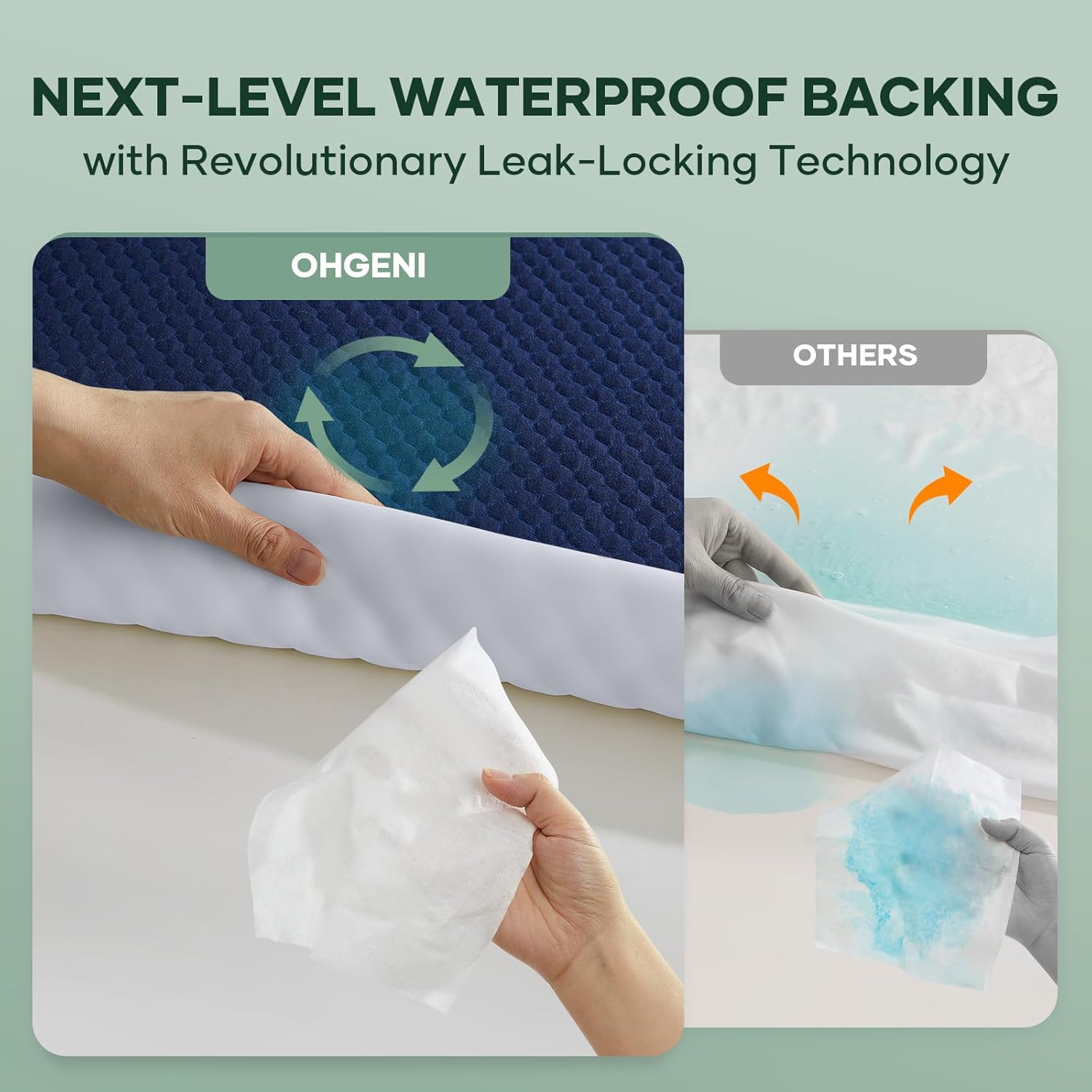 OhGeni 100% Waterproof Mattress Protector, Full Size Mattress Pad, Fits 6"-20" Mattresses with Deep Pocket, Cooling, Breathable Fitted Sheets, Soft Bed Cover, Noiseless, Machine Washable(Navy Blue)