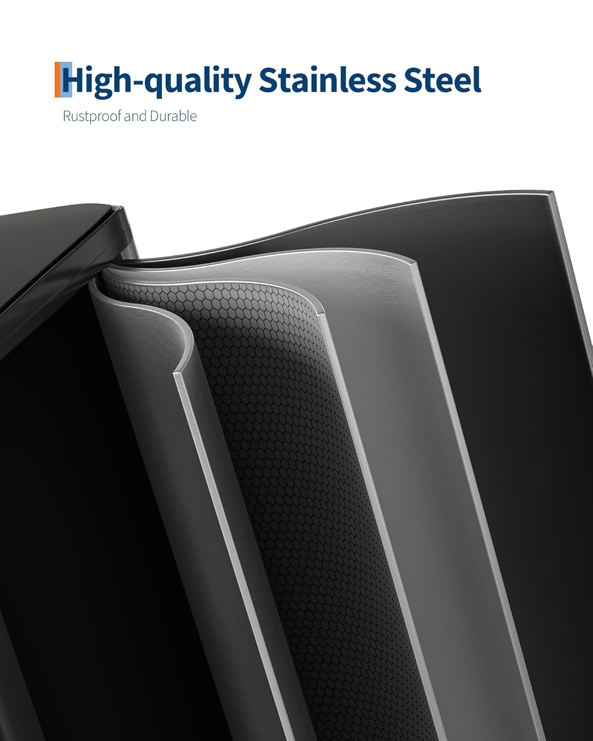 - [HIGH-QUALITY MATERIALS] – GarveeHome stainless steel trash can with lid is engineered for longevity. Its 410-grade ferritic stainless-steel shell delivers rustproof strength, scratch resistance and lasting luster. Two polypropylene inner buckets repel stains, odors and moisture. A thick ABS lid with stainless overlay resists dents; the industrial steel pedal endures 150,000+ steps and the one-piece ABS hinge survives over 300,000 open/close cycles