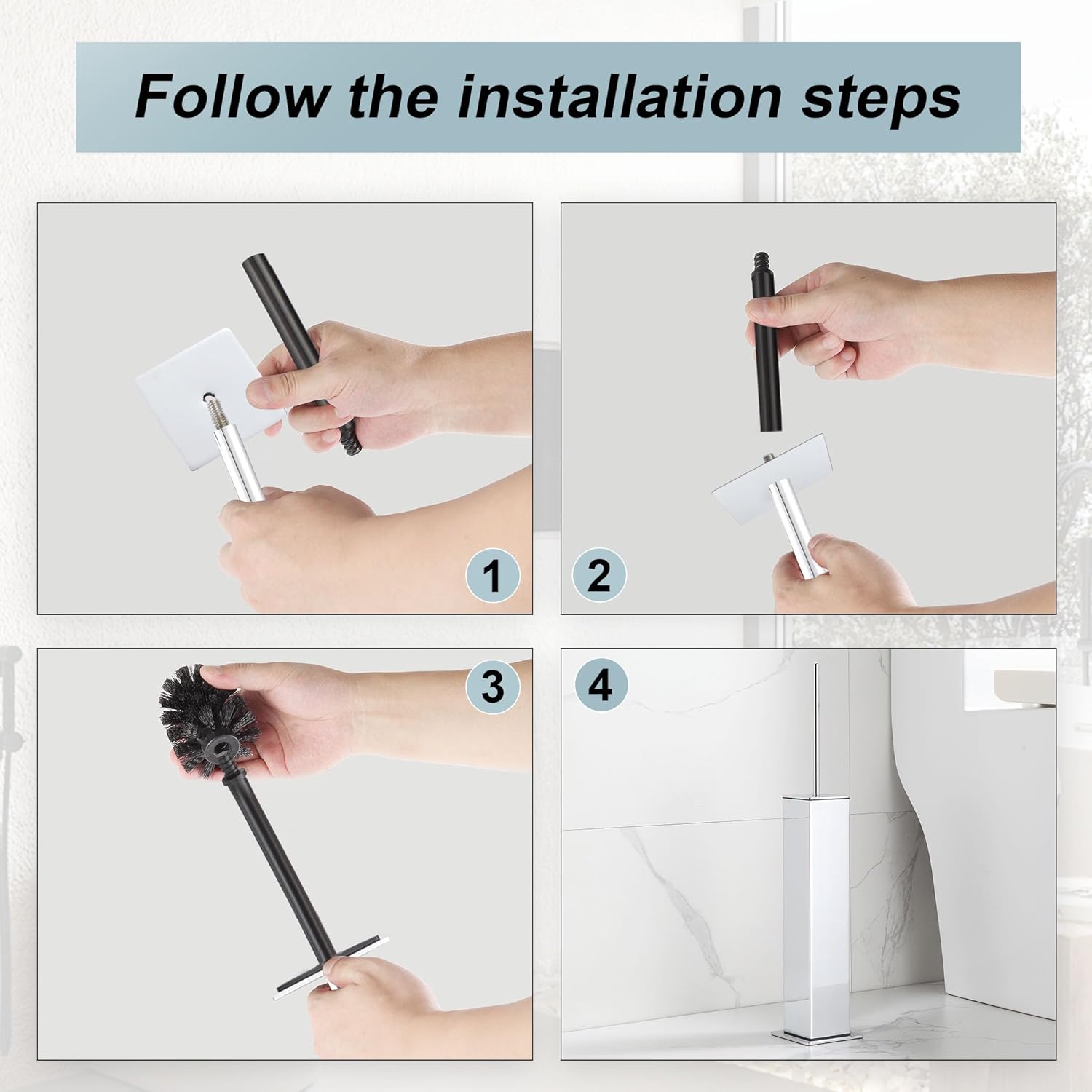 - Premium 304 Stainless Steel Toilet Brush Set:Crafted from 1mm-thick 304 stainless steel, this toilet brush and holder set delivers exceptional corrosion resistance. The durable combination of toilet bowl brush and holder ensures long-lasting performance.